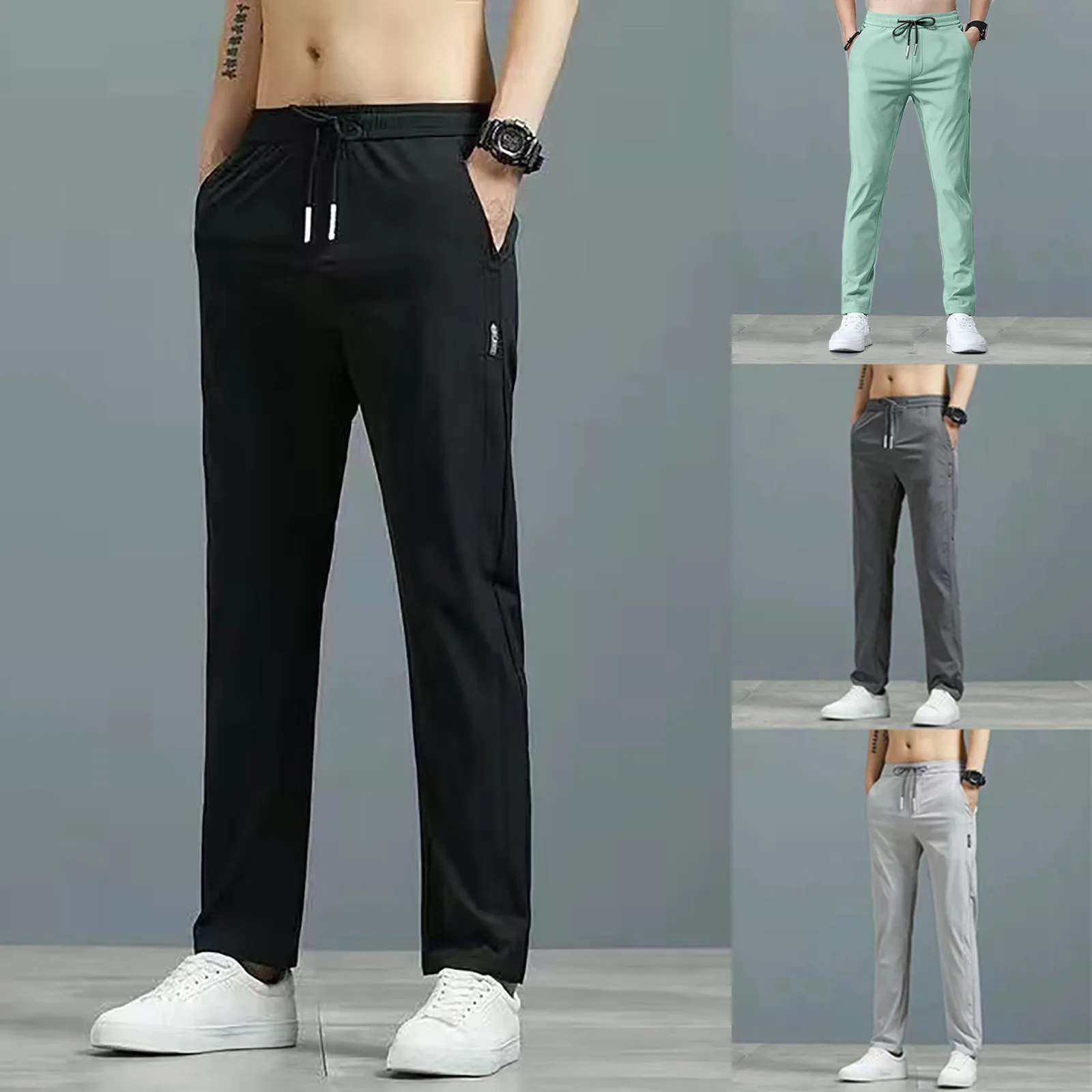 Men's Pants With Deep Pockets Loose Fit Casual Drawstring Jogging Trousers For Running Workout Training Basketball