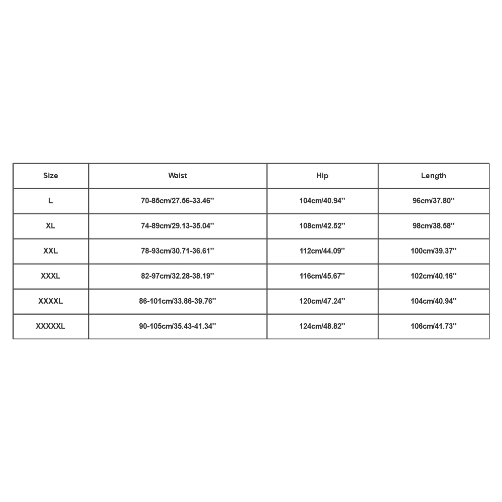 | XXXXXL | 98-105cm/38.58-41.34'' | 124cm/48.82'' | 106cm/41.73'' |