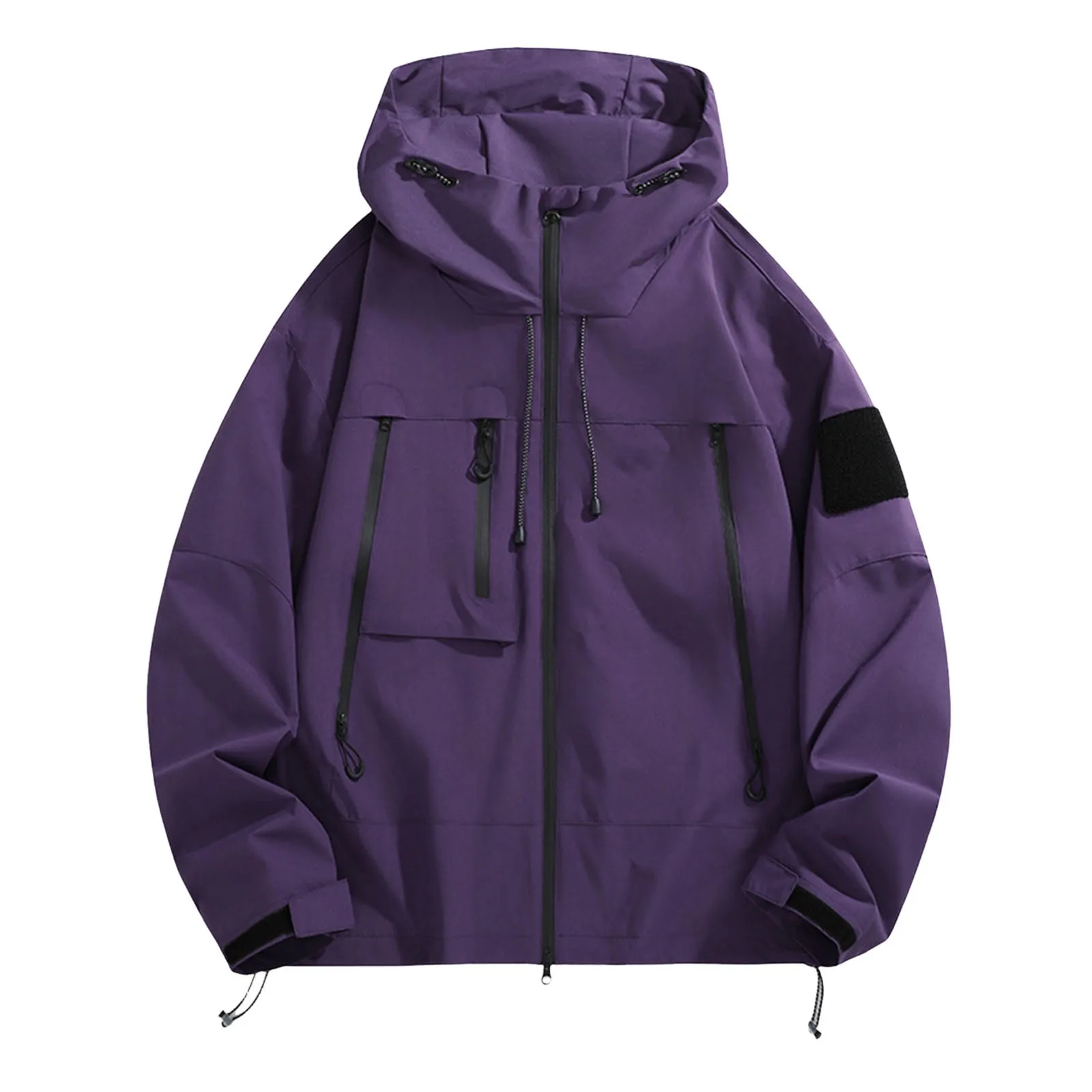 Men's Windbreaker Waterproof Hooded Rain Coats Zip Up