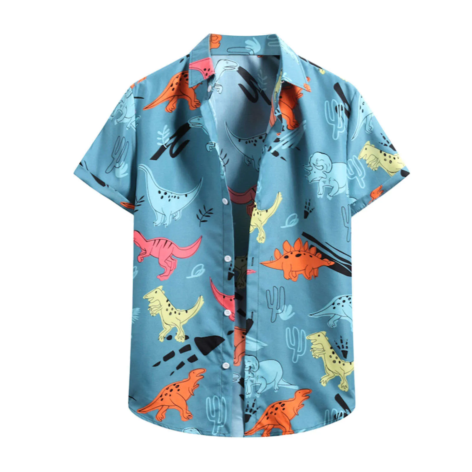Men Summer Shirt Beach Style Dinosaur Printed Hawaiian