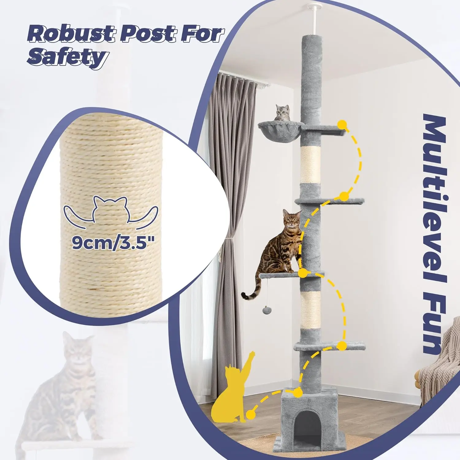 Meow Sir Floor to Ceiling Cat Tree Ajustable Height