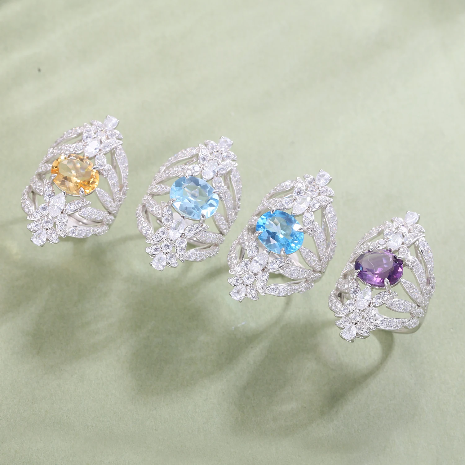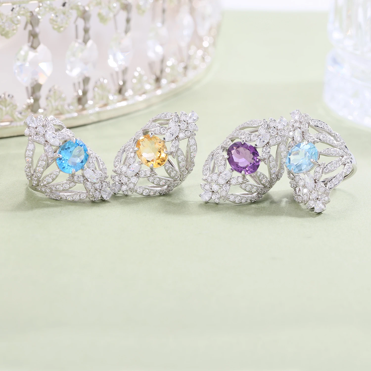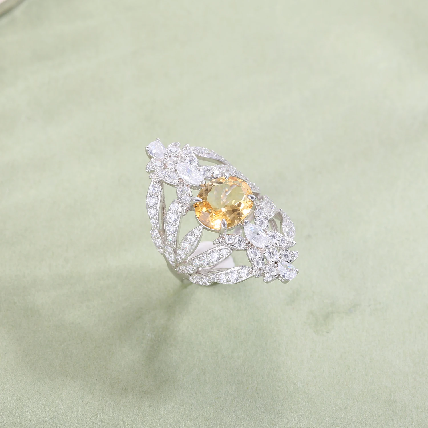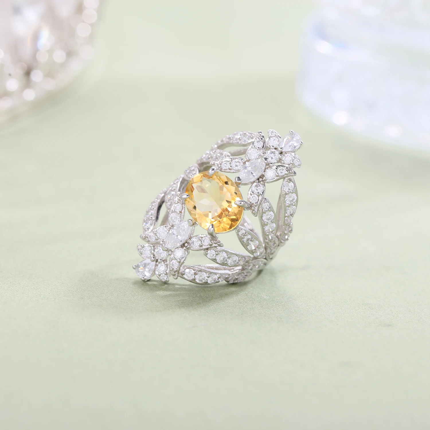 Natural Citrine Statement Ring Sterling Silver Luxury Bridal Jewelry