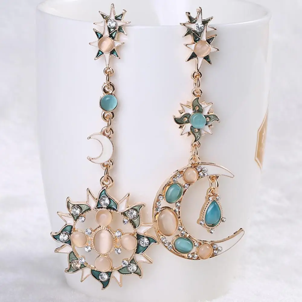 New Style Moon Stud Earrings Fashion Star Sun Moon Rhinestone