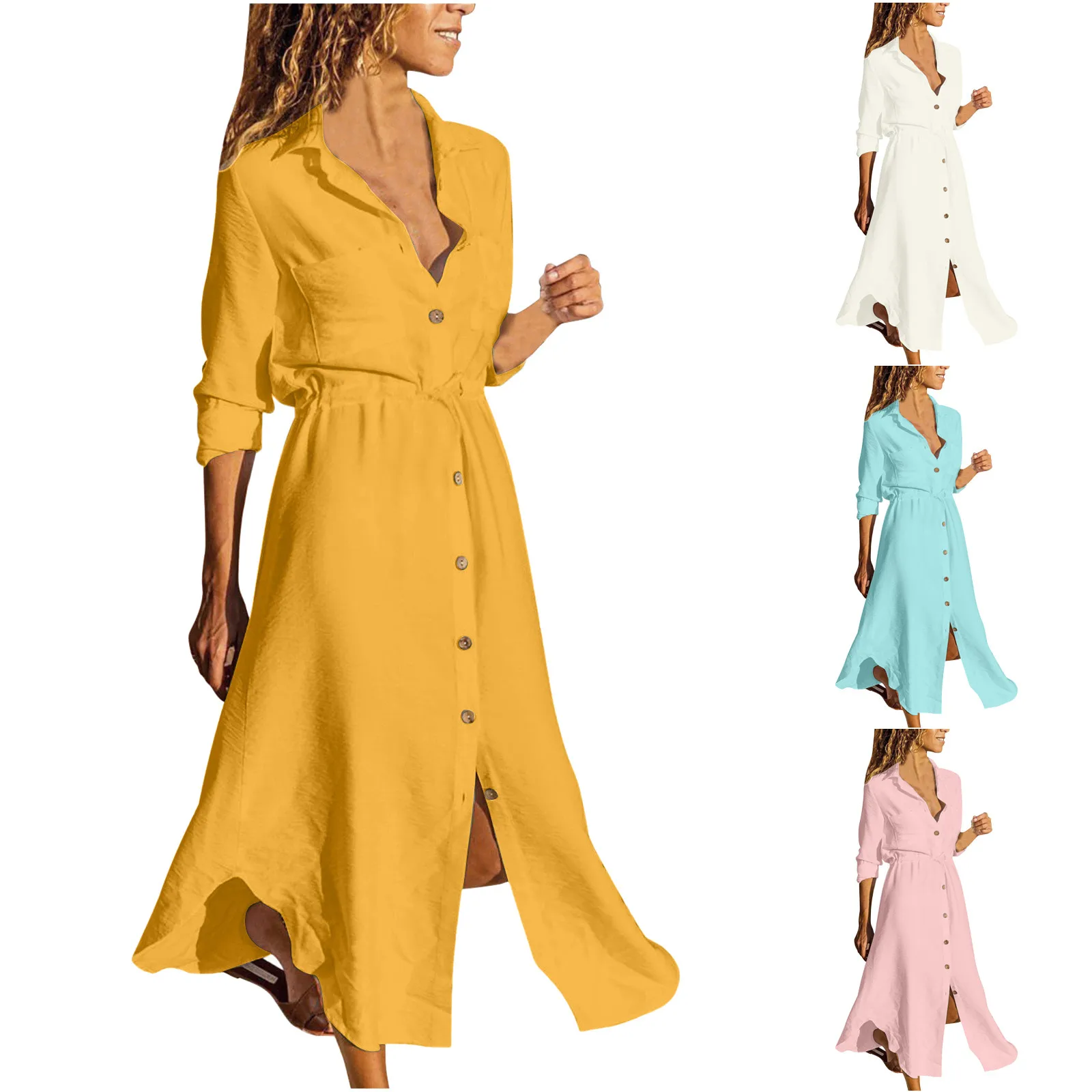 Office Lady Drawstring Slim Shirt Dress