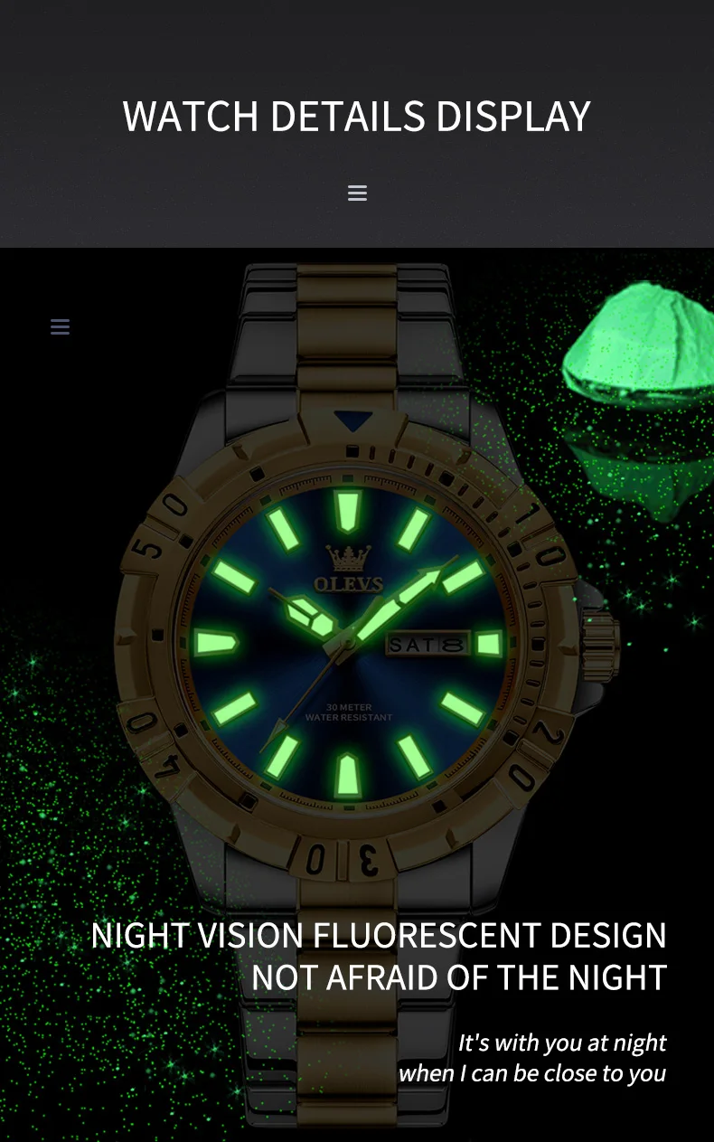 OLEVS Certified Brand Men's Watches Week Calendar Waterproof