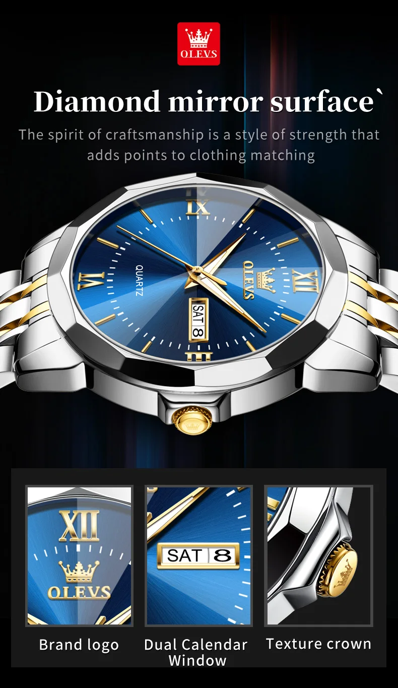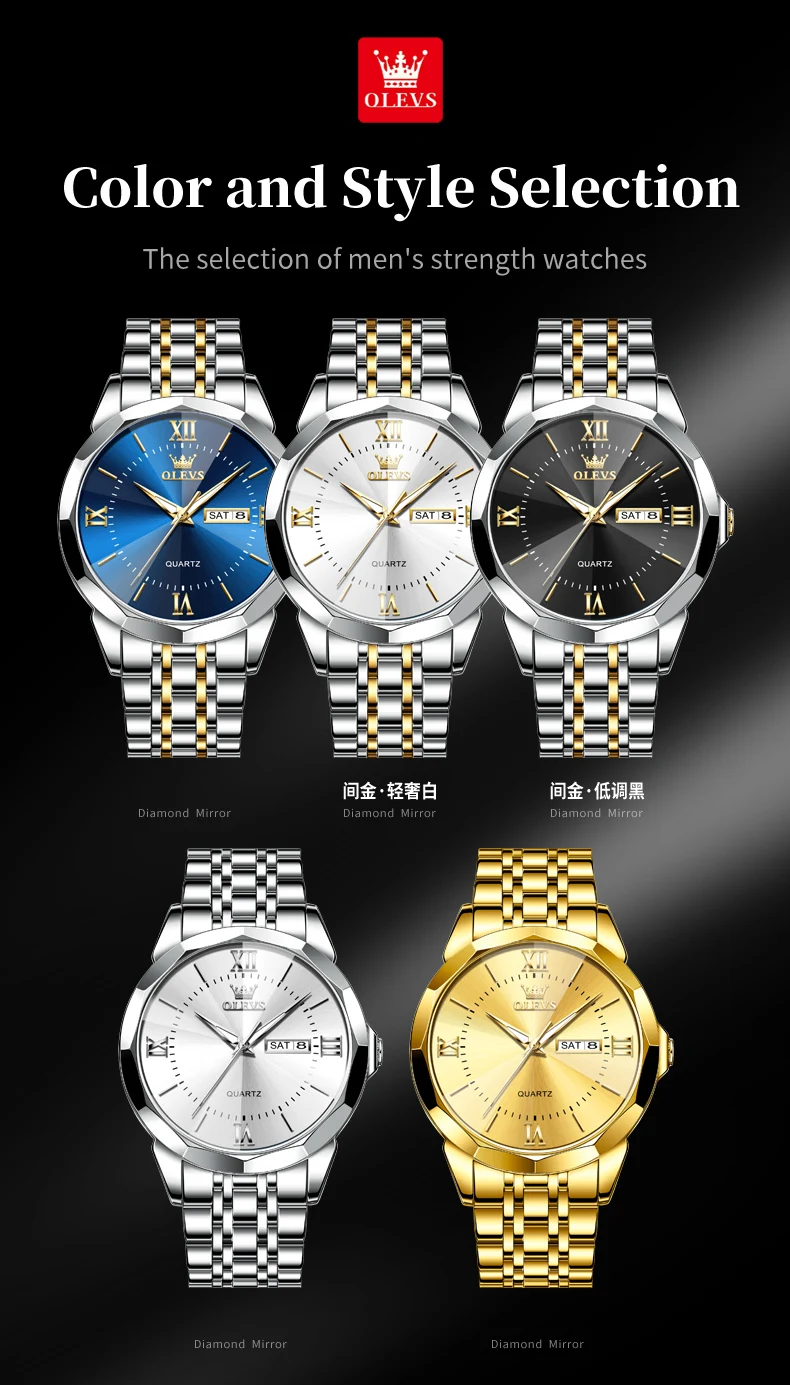 OLEVS Original Luxury Brand Men's Watches Stainless steel Waterproof Calendar Male Wristwatch Trend Quartz Watch for Man NEW