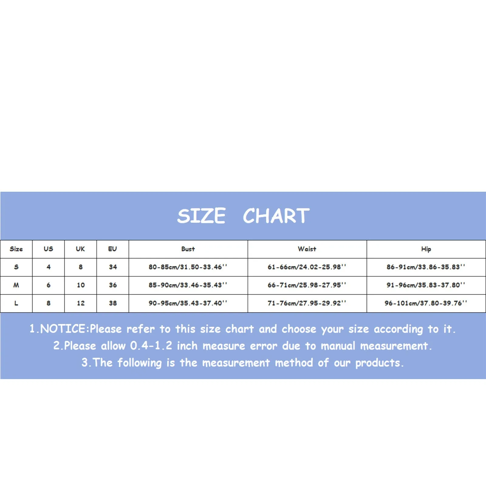 | Size:S | US:4 | UK:8 | EU:34 | Under Bust :63-69cm/24.80-27.17'' | Waist :61-66cm/24.02-25.98'' | Hip:86-91cm/33.86-35.83'' |