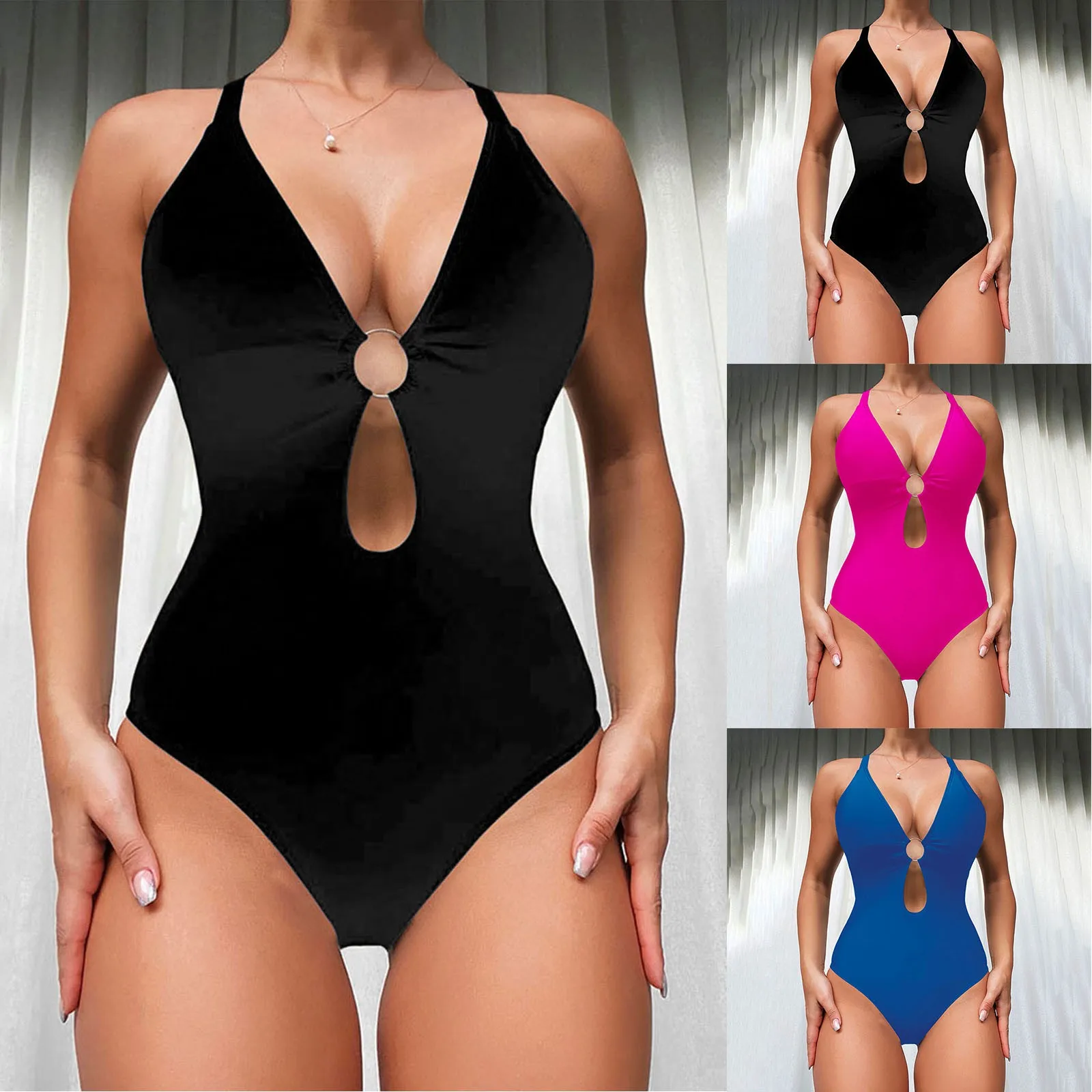 One Piece Swimsuit Hollow Out Sexy Deep V Bikini