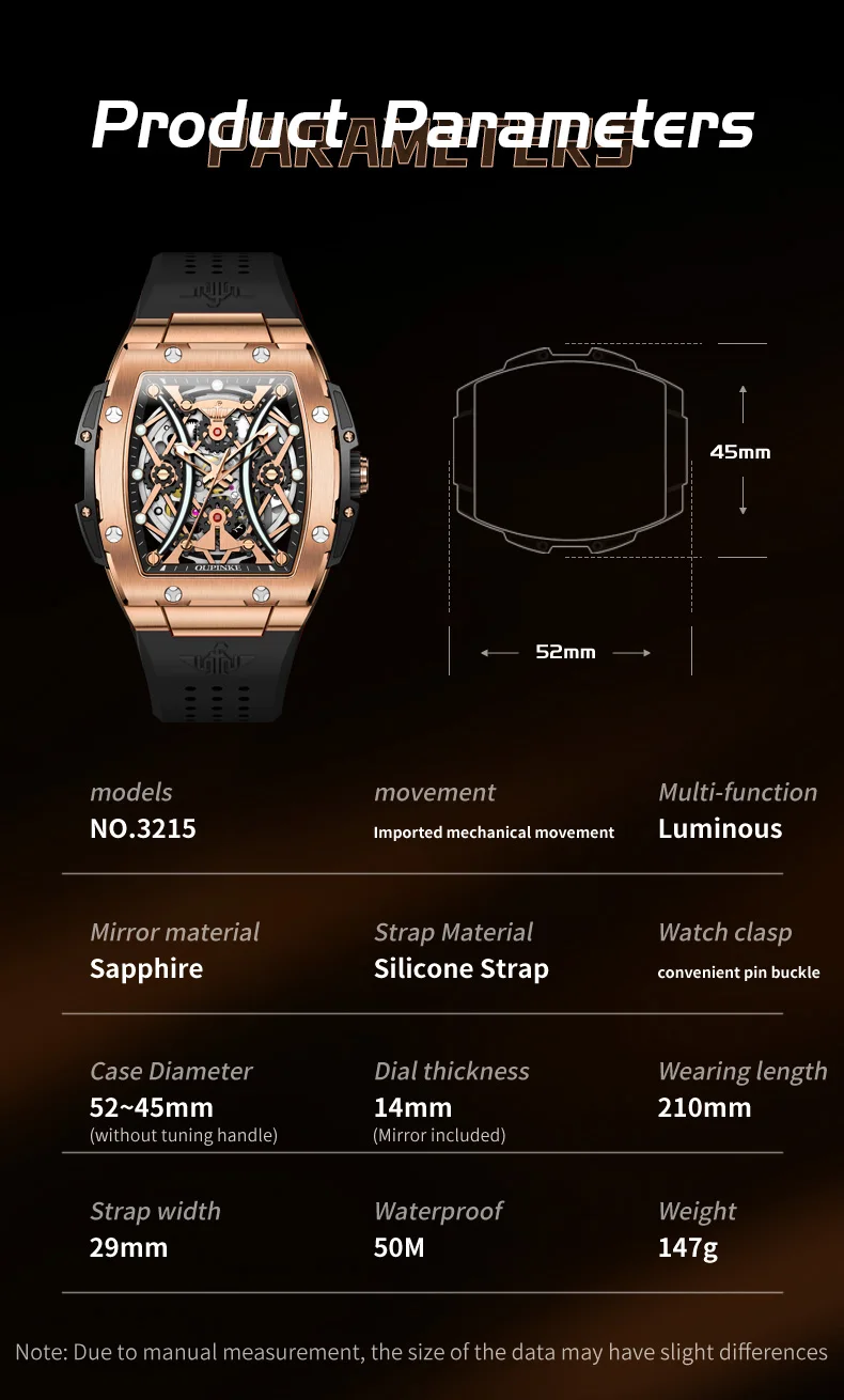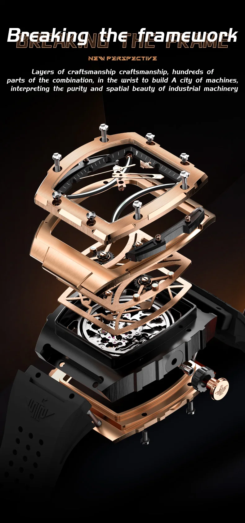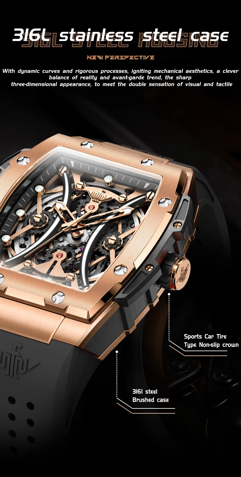 OUPINKE Men's Watches Fully Automatic Waterproof Tonneau