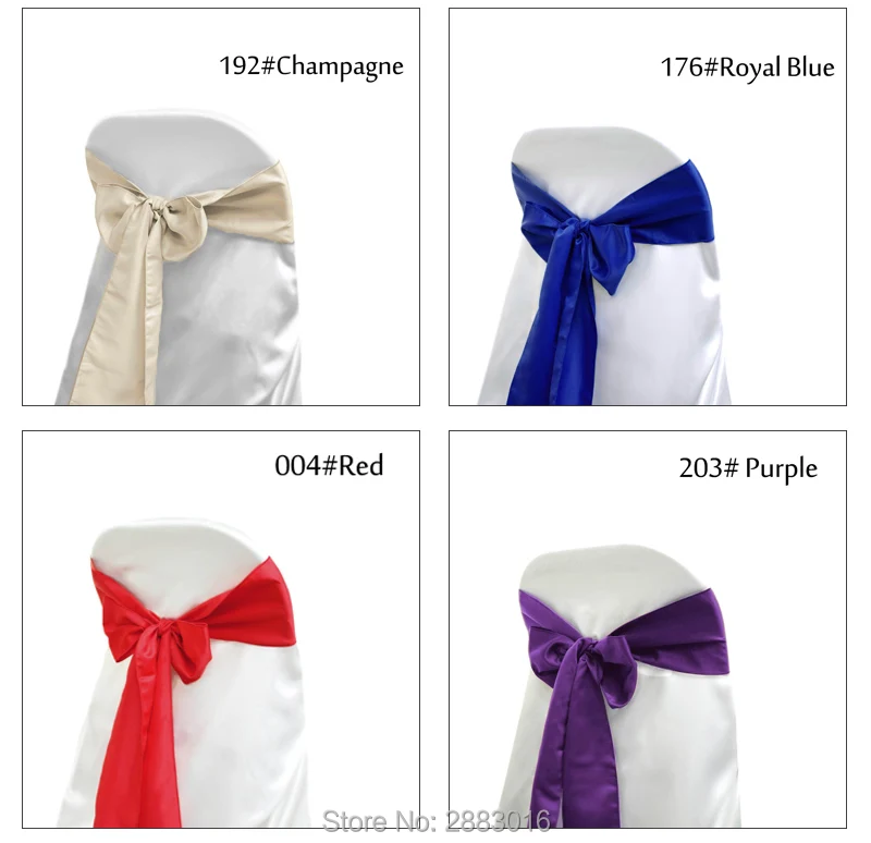 50PCS/Lot Decoration Wedding Chair Knots Ties Satin Bow Hotel Banuqet Party Chair Bow 7"x108" Red Purple Bands Chair Sashes