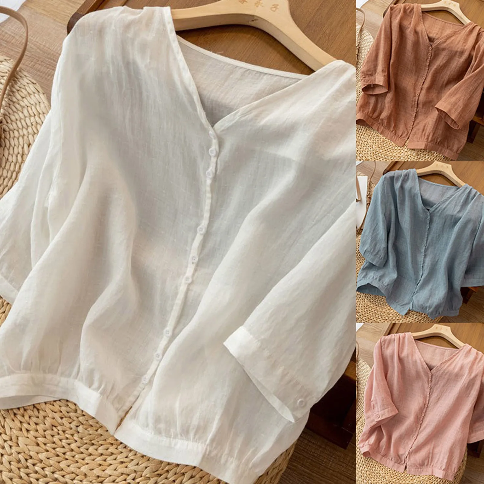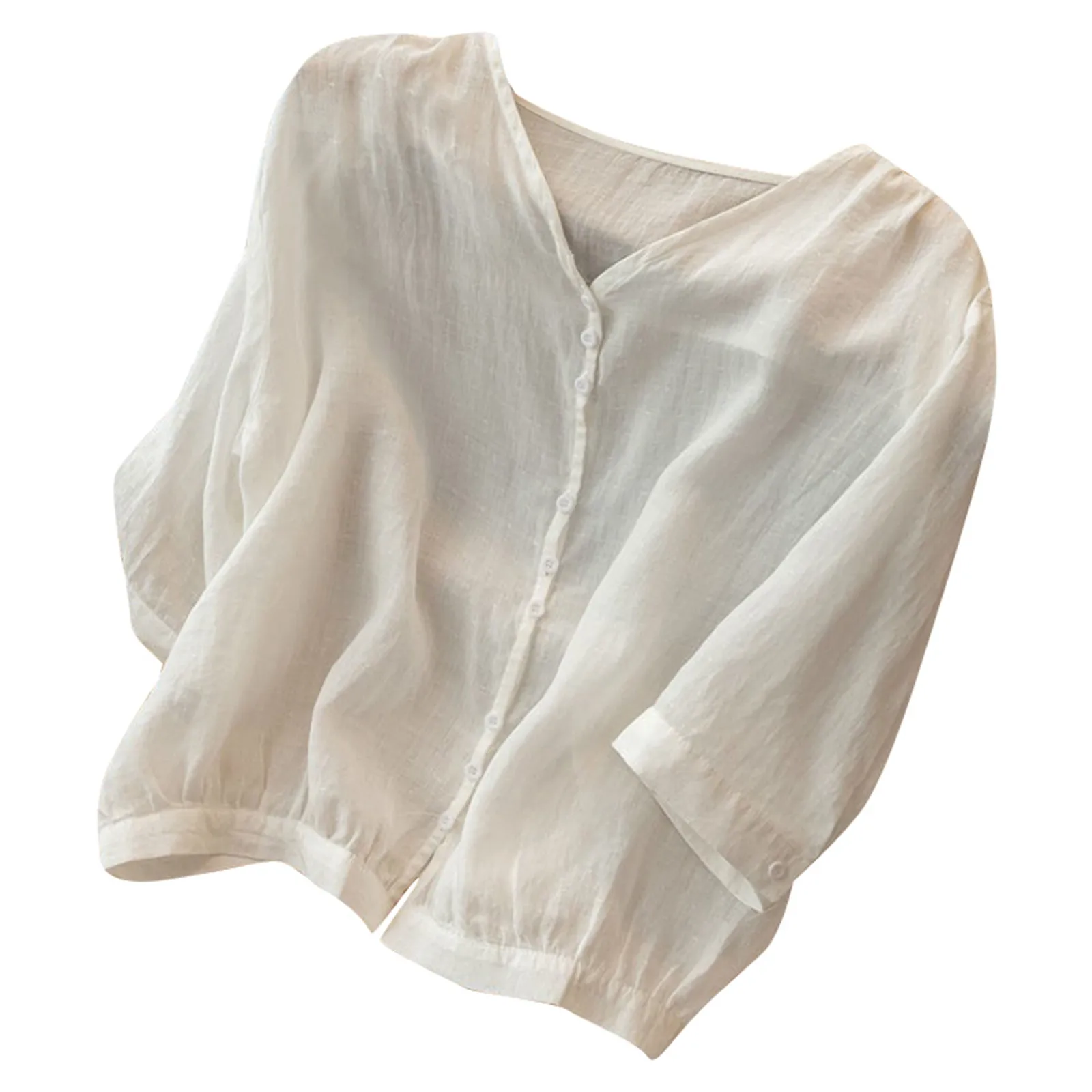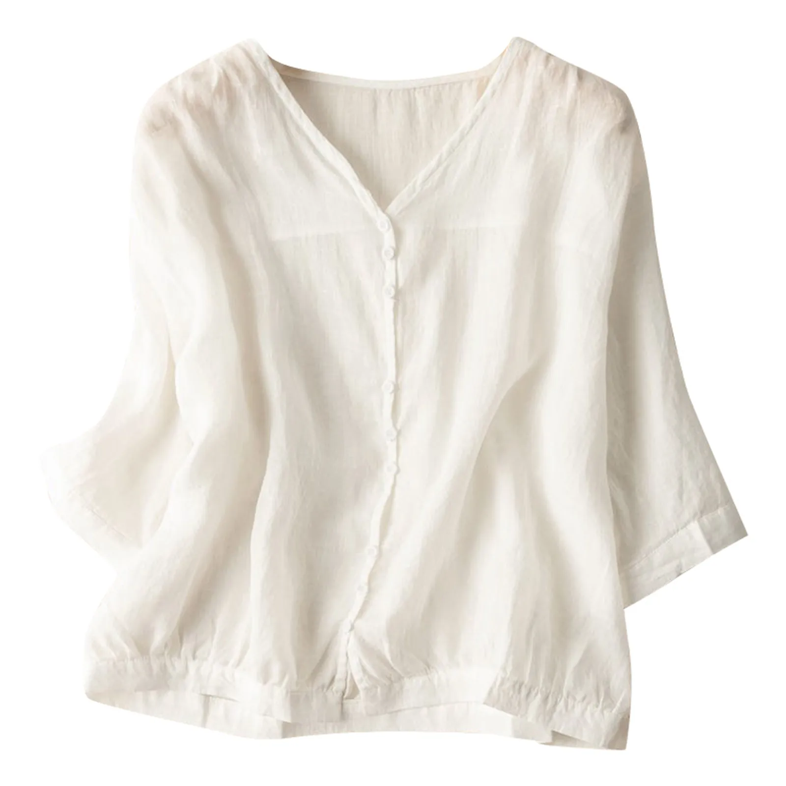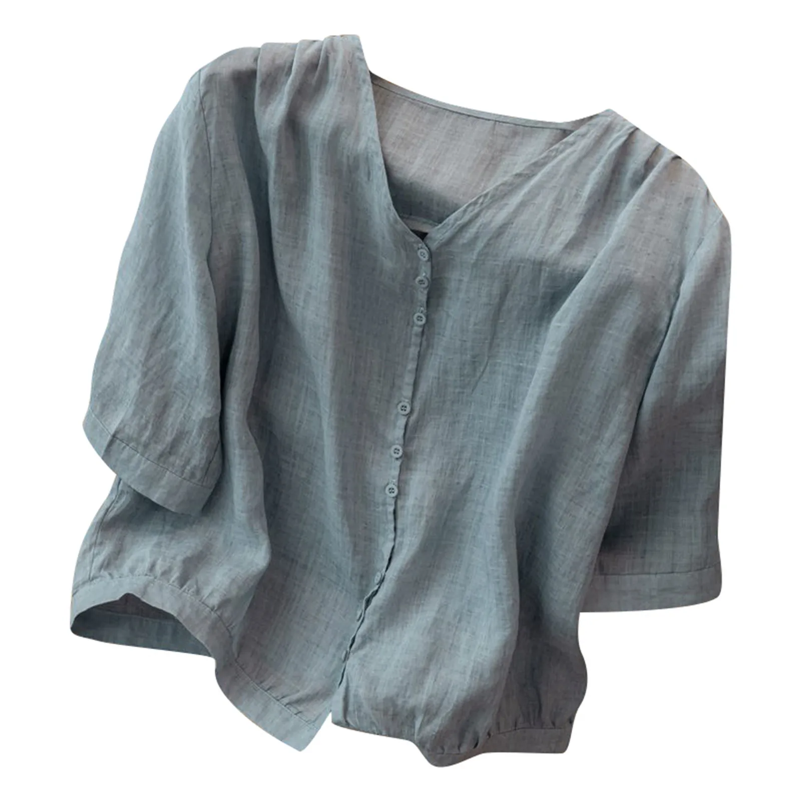 1. Premium Cotton Linen Blend: Crafted from a soft, breathable cotton-linen fabric, this plus-size tunic top optimal comfort and a lightweight feel for all-day wear.