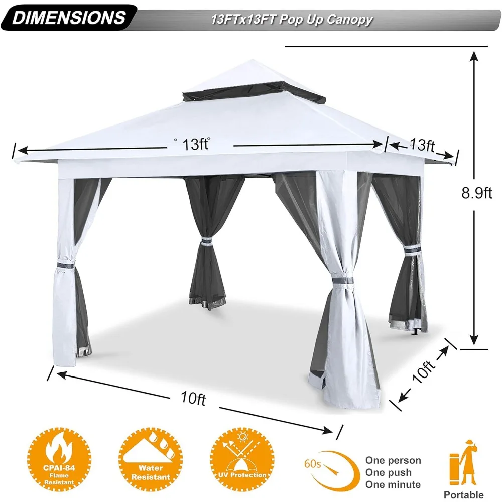 Pop Up Gazebo 13x13 - Canopy Tent with Mosquito Netting, White