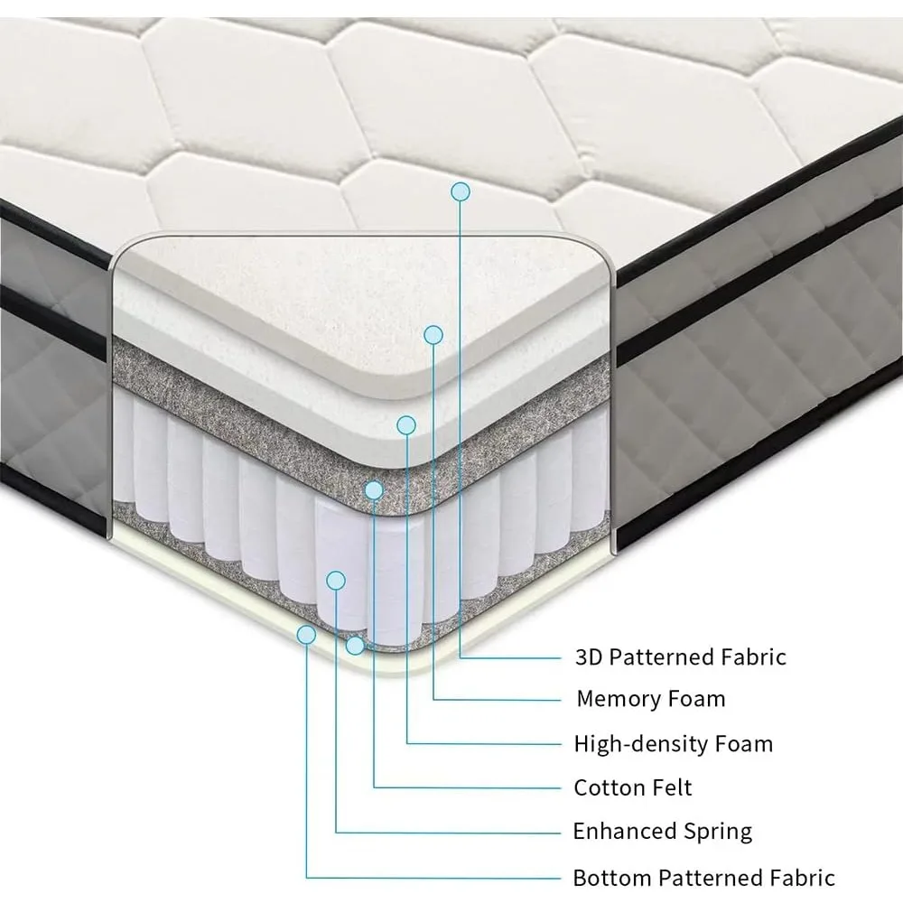 Queen Hybrid Mattress 10 Inch Innerspring, Memory Foam Hybrid