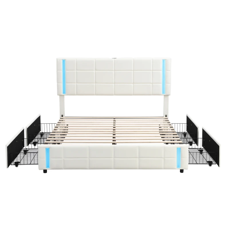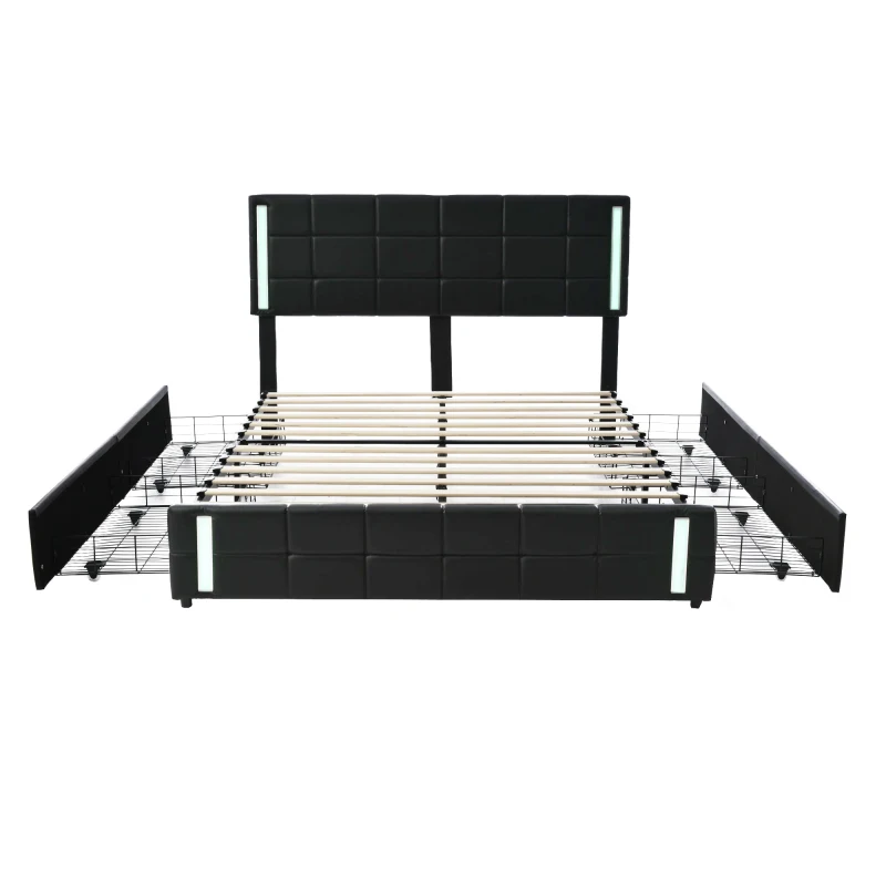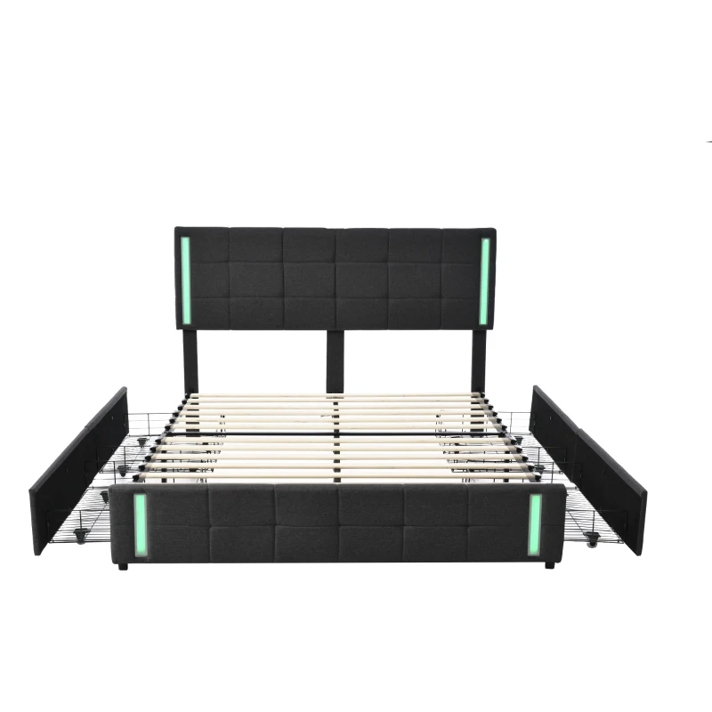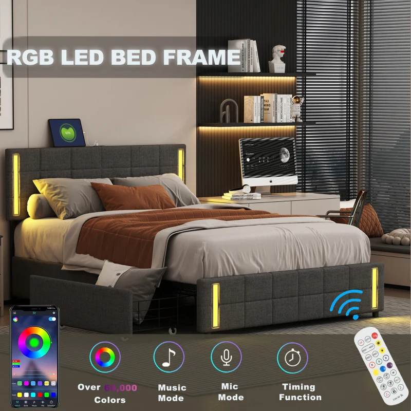 [Modern Bed with LED] Decorated with tufted headboard design, there is beautiful LED light around the bed, you can control by Remote/APP, It offers bright glowing & vivid color. Freely change in 16 million colors, precisely dial in color temperature, brightness & timing settings, features Strobe, Gradient, Jump at different speeds & even has light pulse in sync with music & game to create various ambiances.