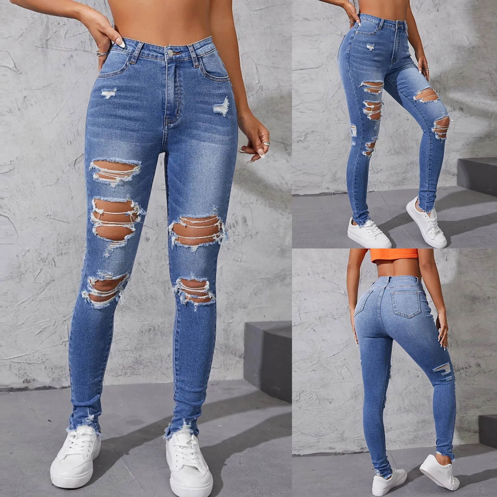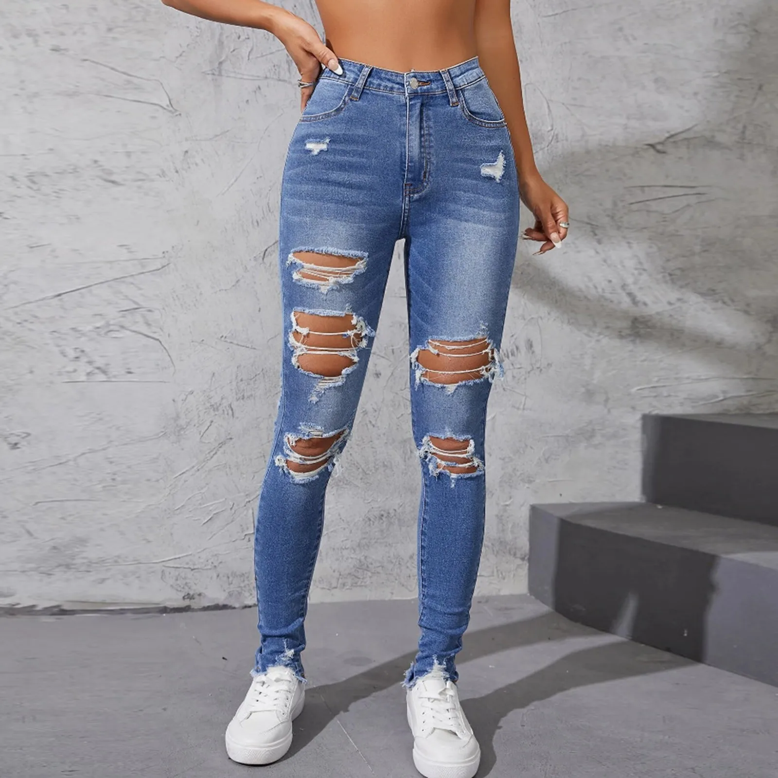 Ripped Holes Casual Skinny 2024 Denim Pants