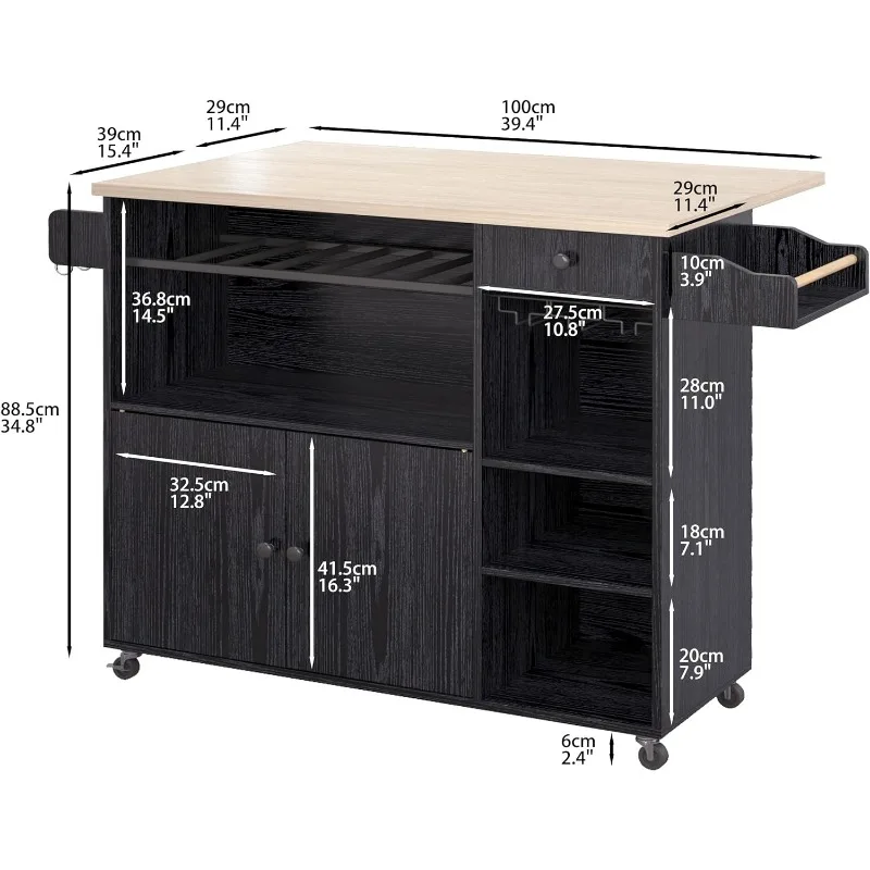- with Drop Leaf Top: when the drop-leaf is expanded, you can enjoy your dinner at the table, when dropped down, and it will become a multipurpose kitchen trolley. unfold the drop-leaf board: 26.8"D x 39.4"W; fold the drop-leaf board: 15.4" D x 39.4"W