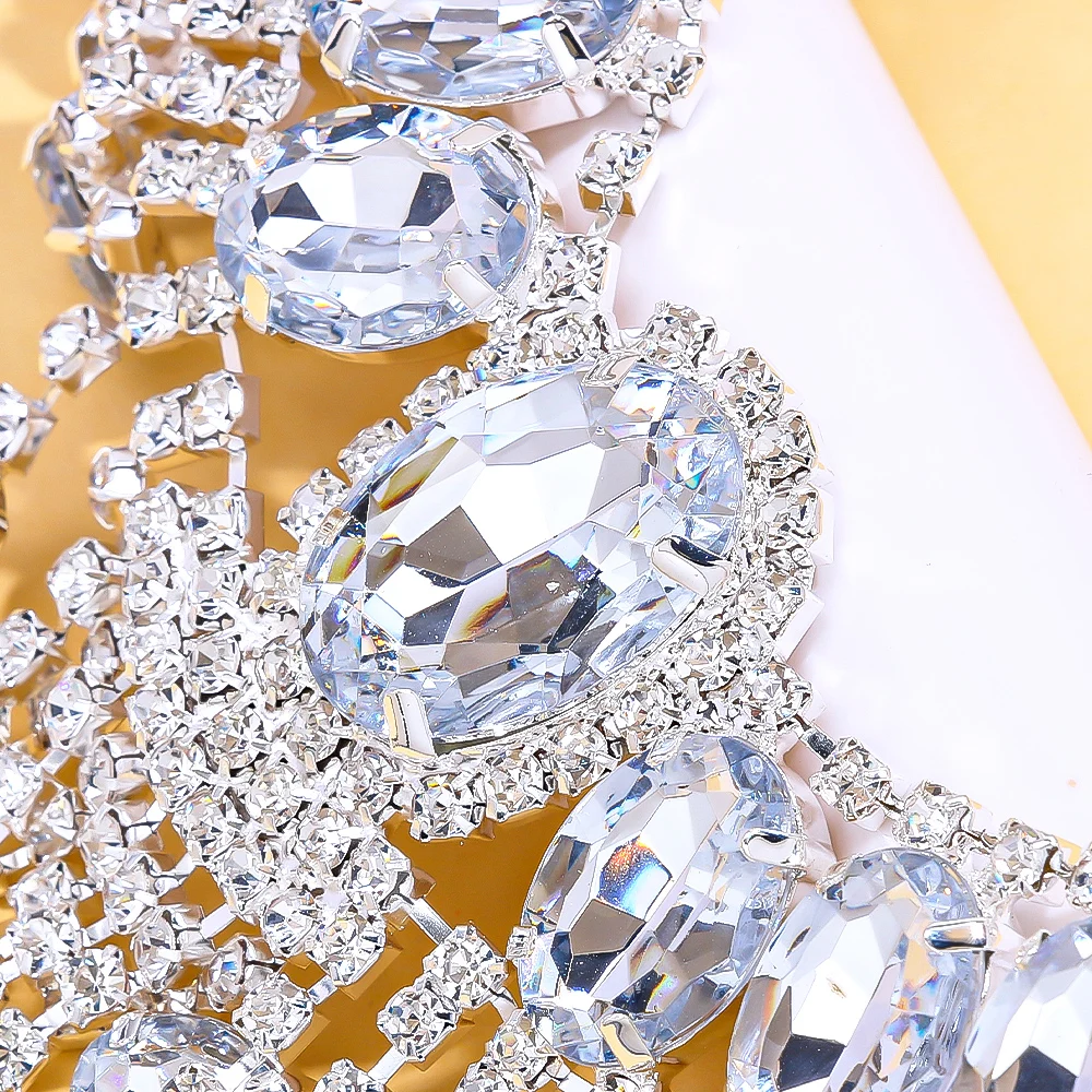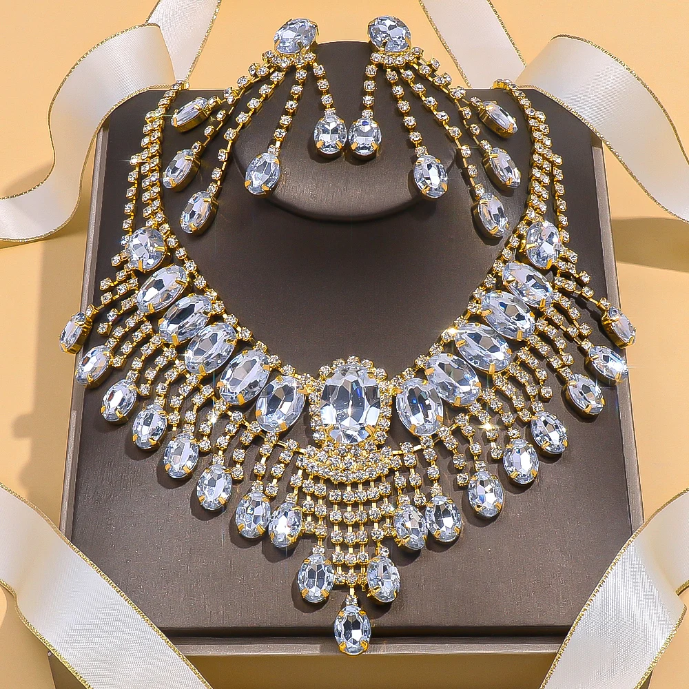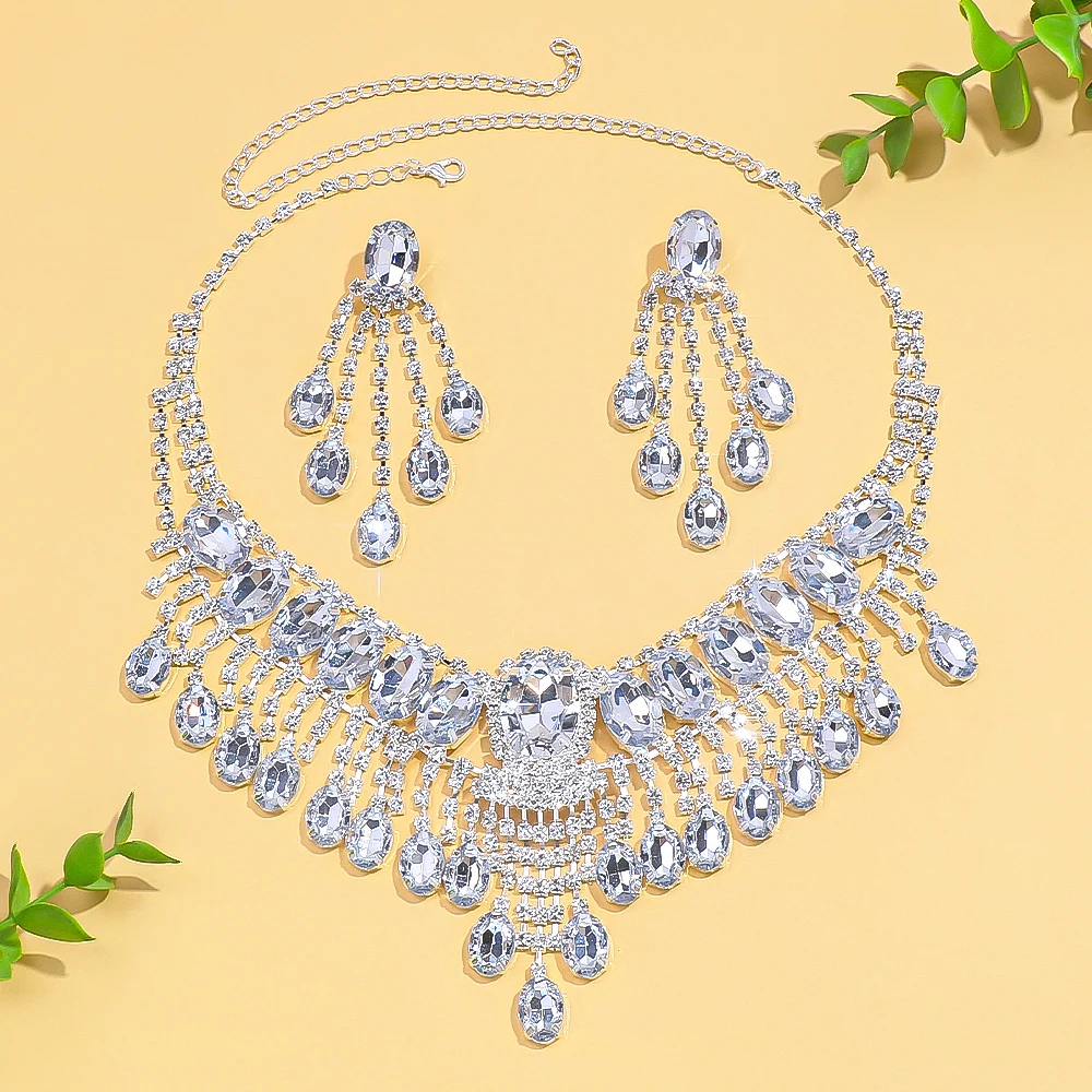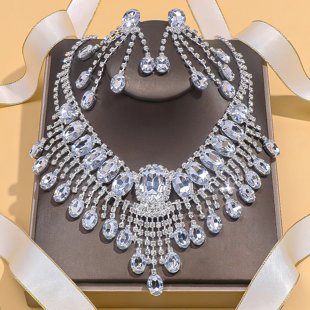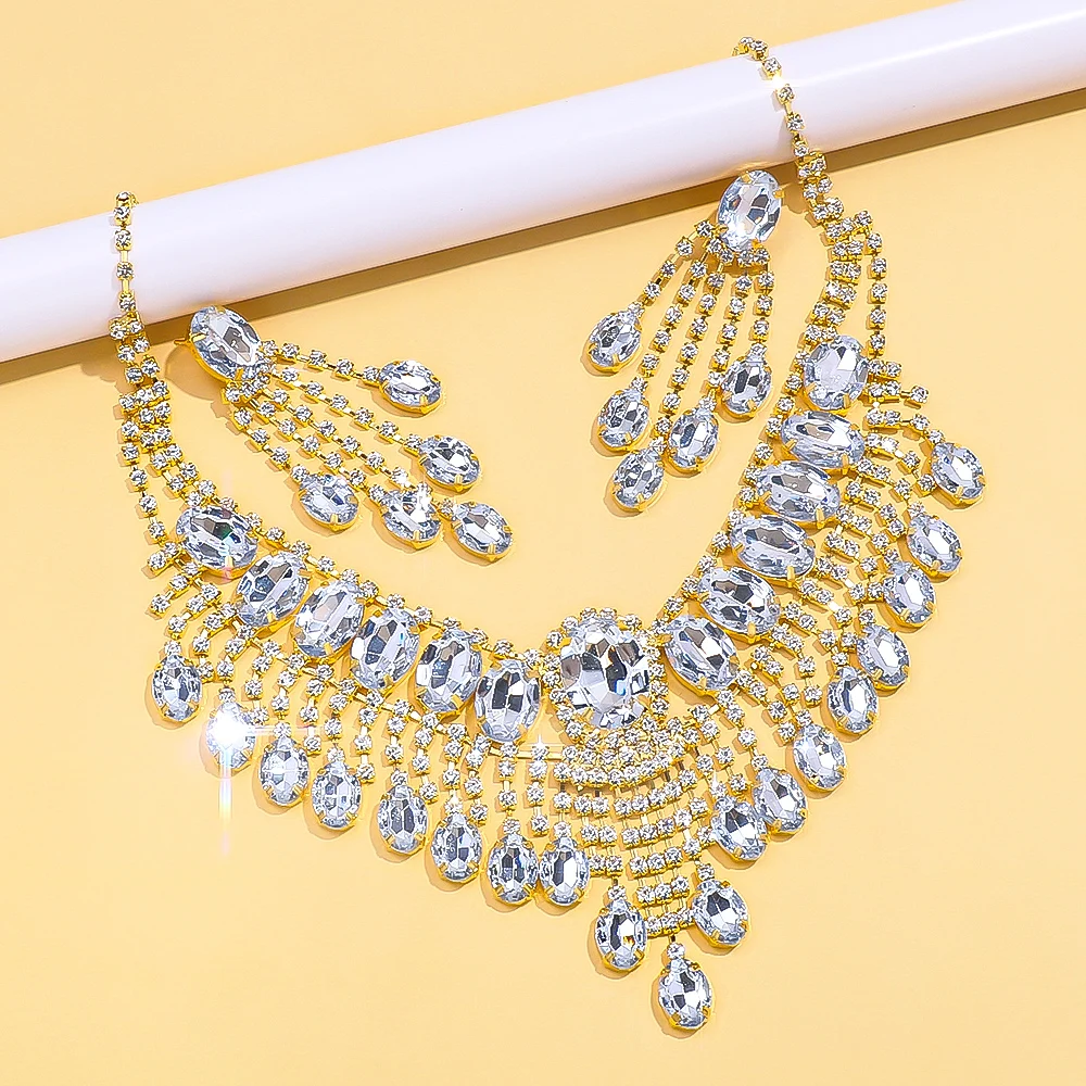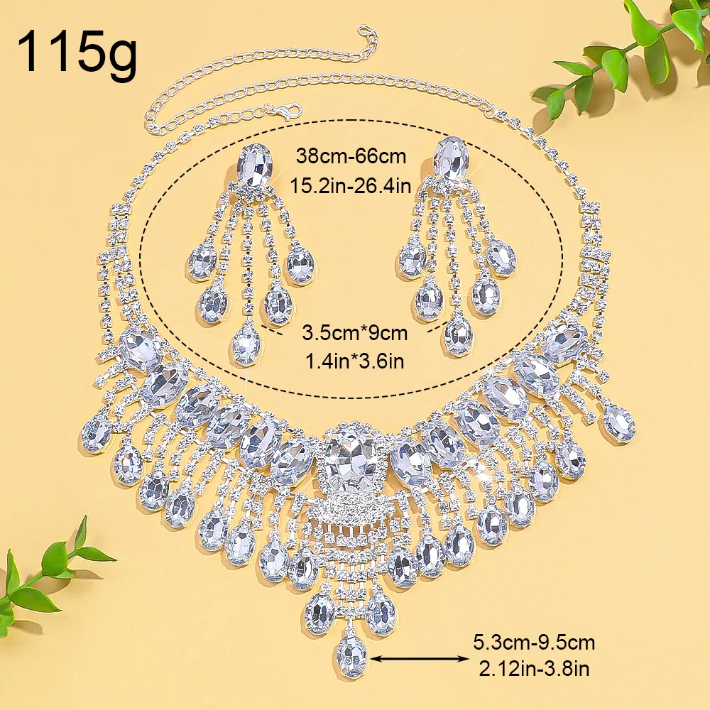 Round Crystal Tassel Jewelry Set Rhinestone Necklace and Earrings Set