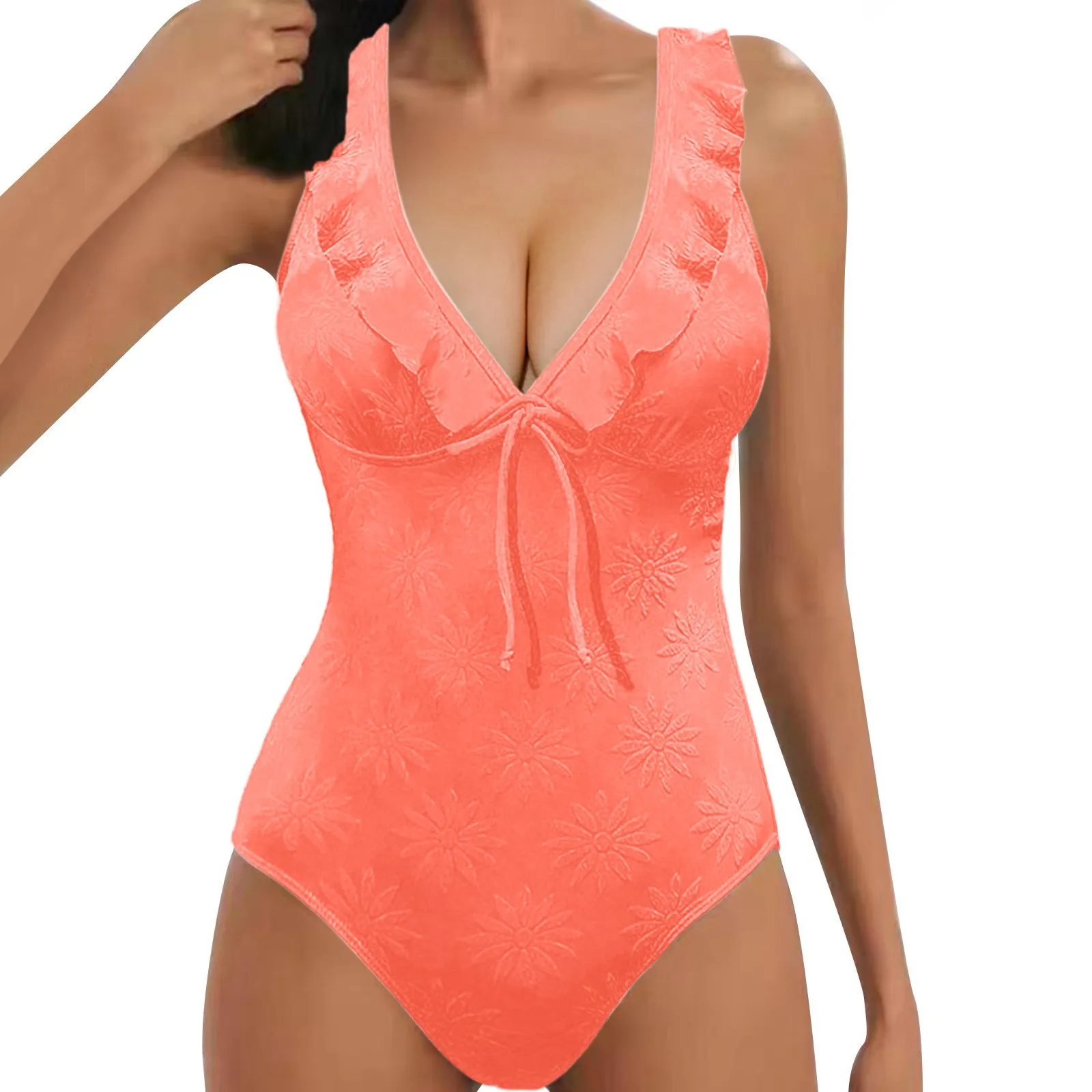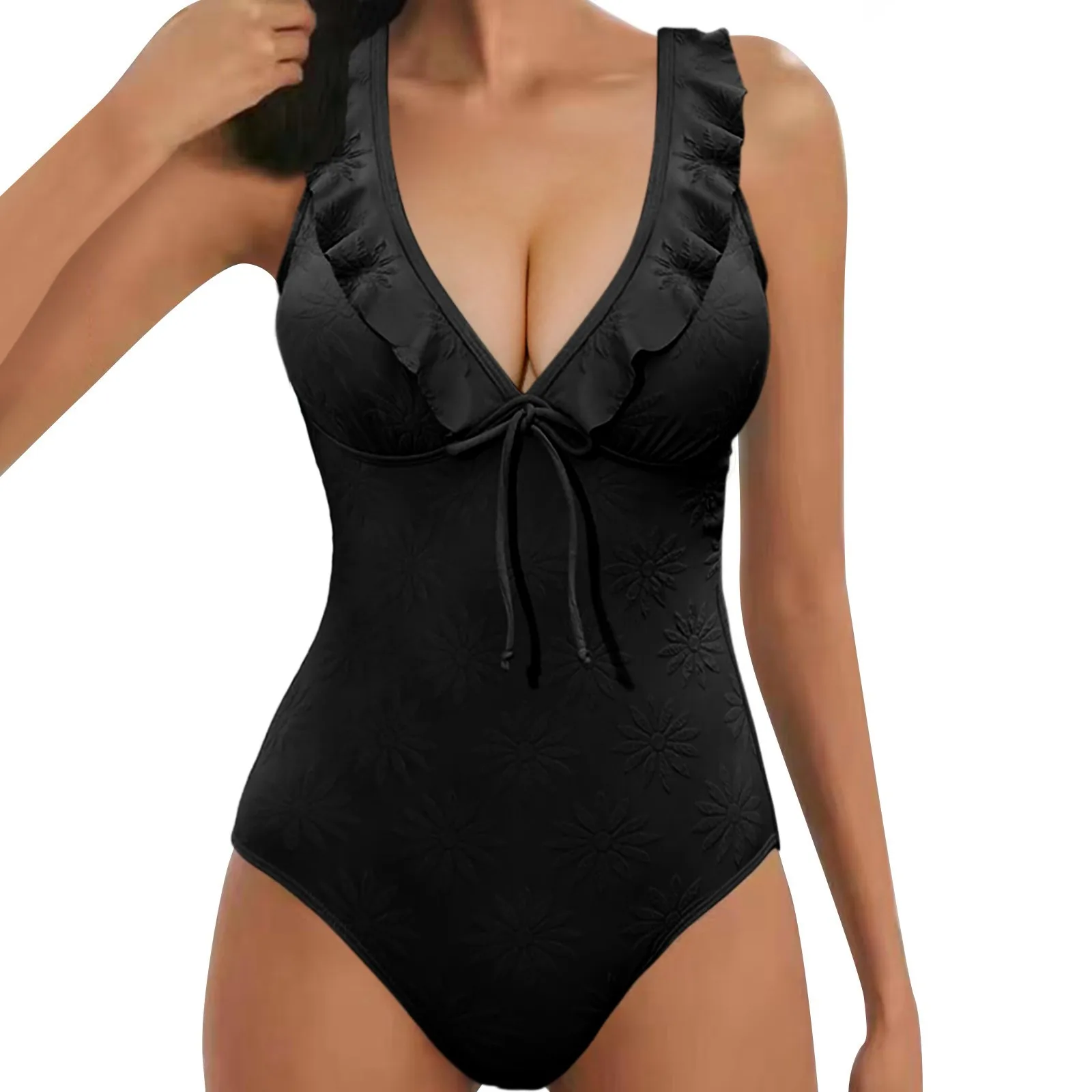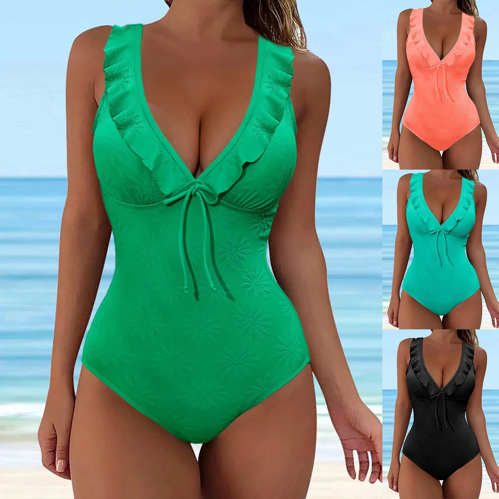 Ruffled One-Piece Swimsuit For Women Sexy V-Neck