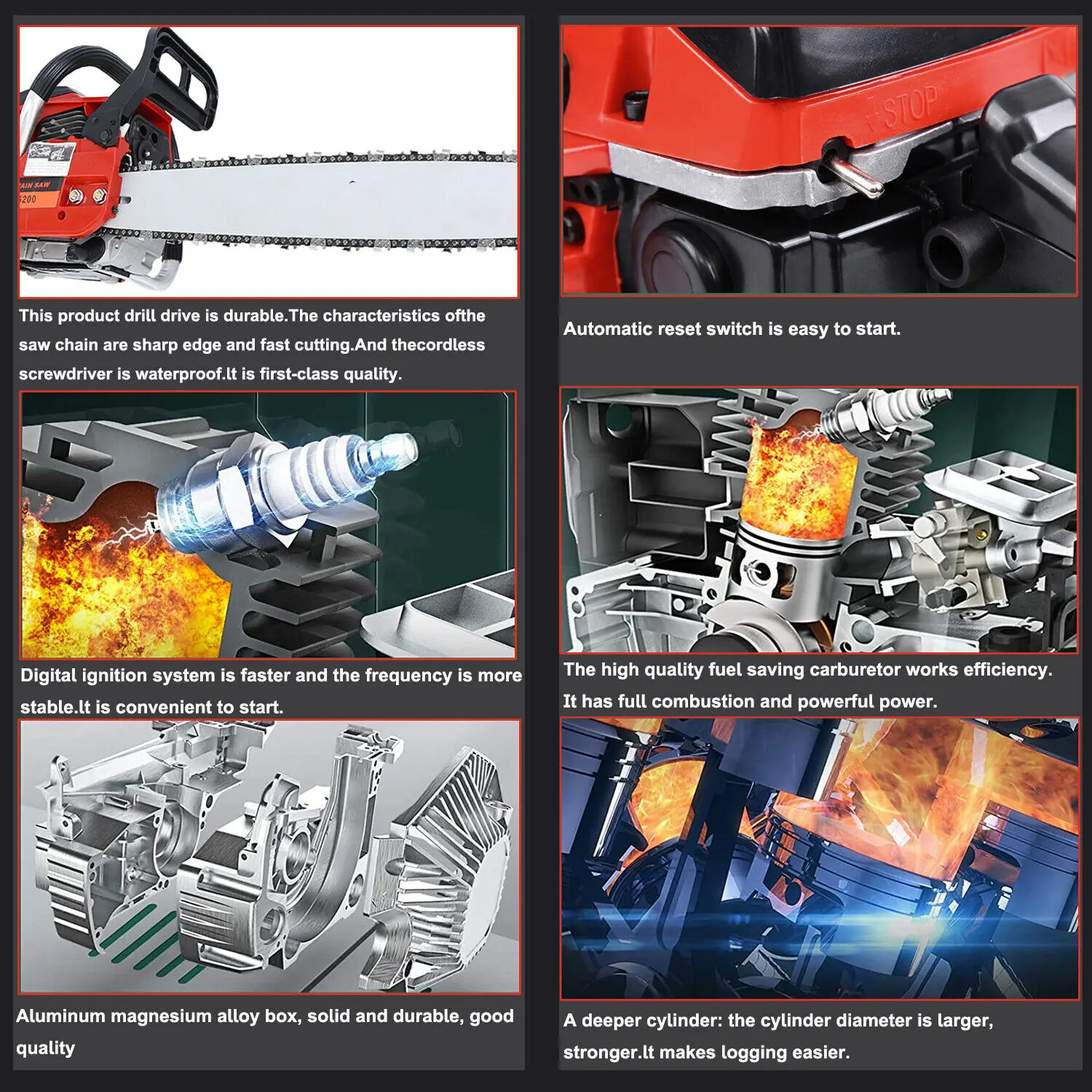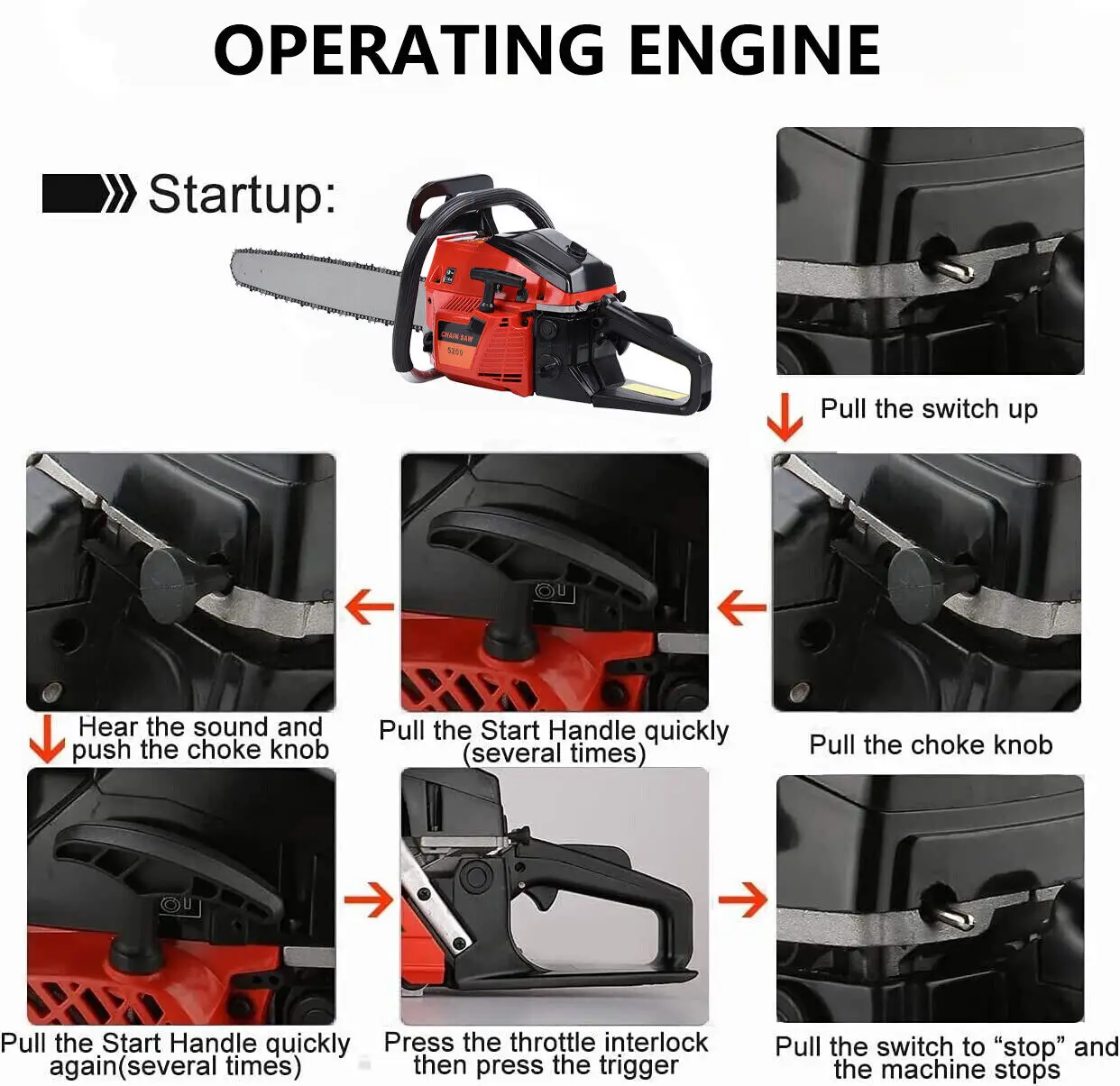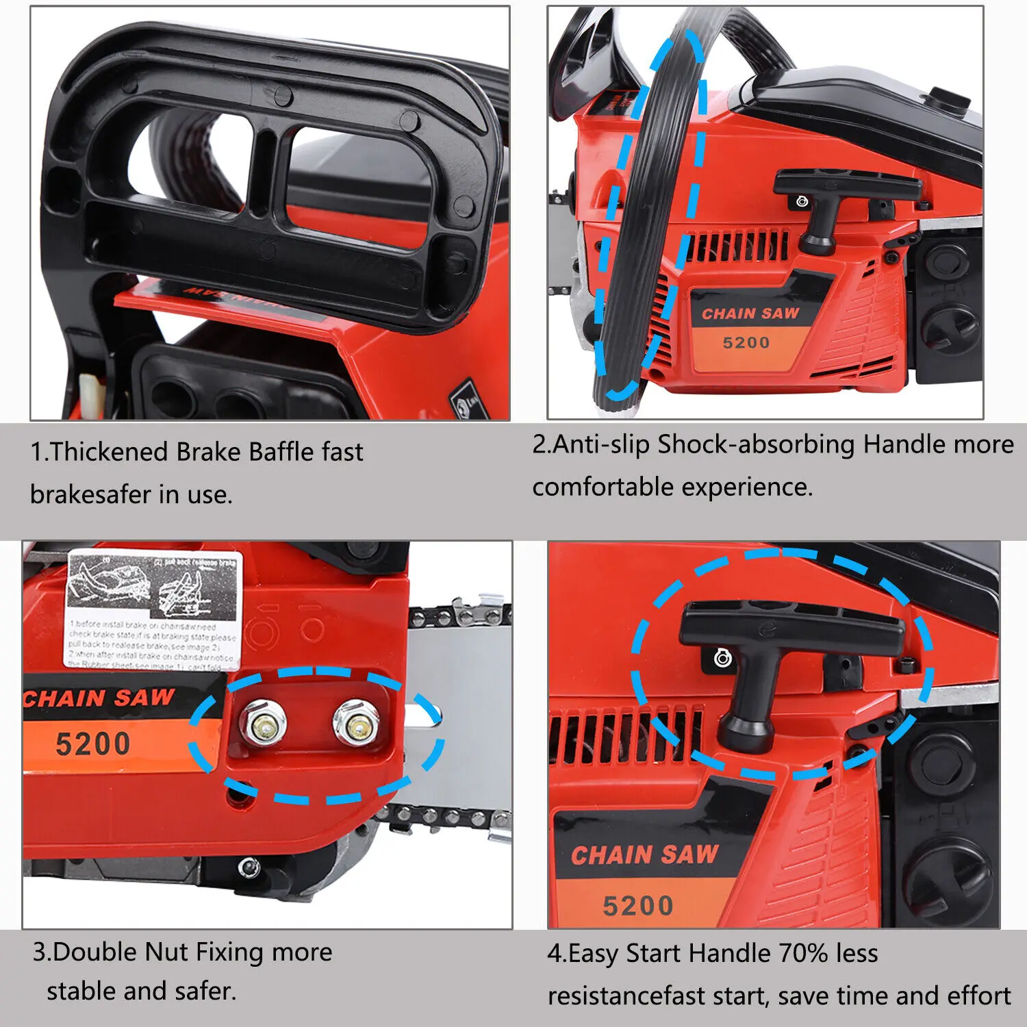 Engine displacement:: 25.4cc/52cc Gas Chainsaw