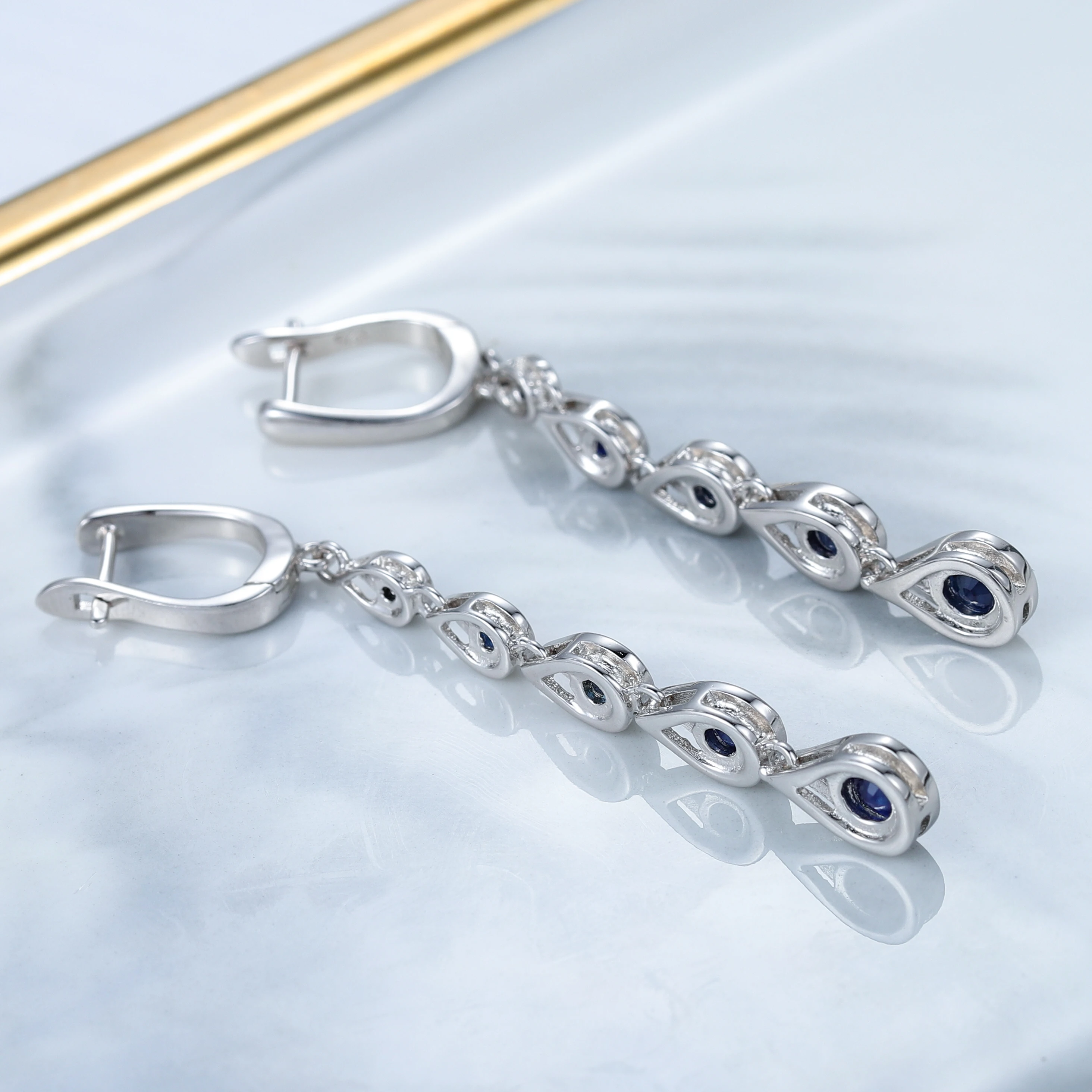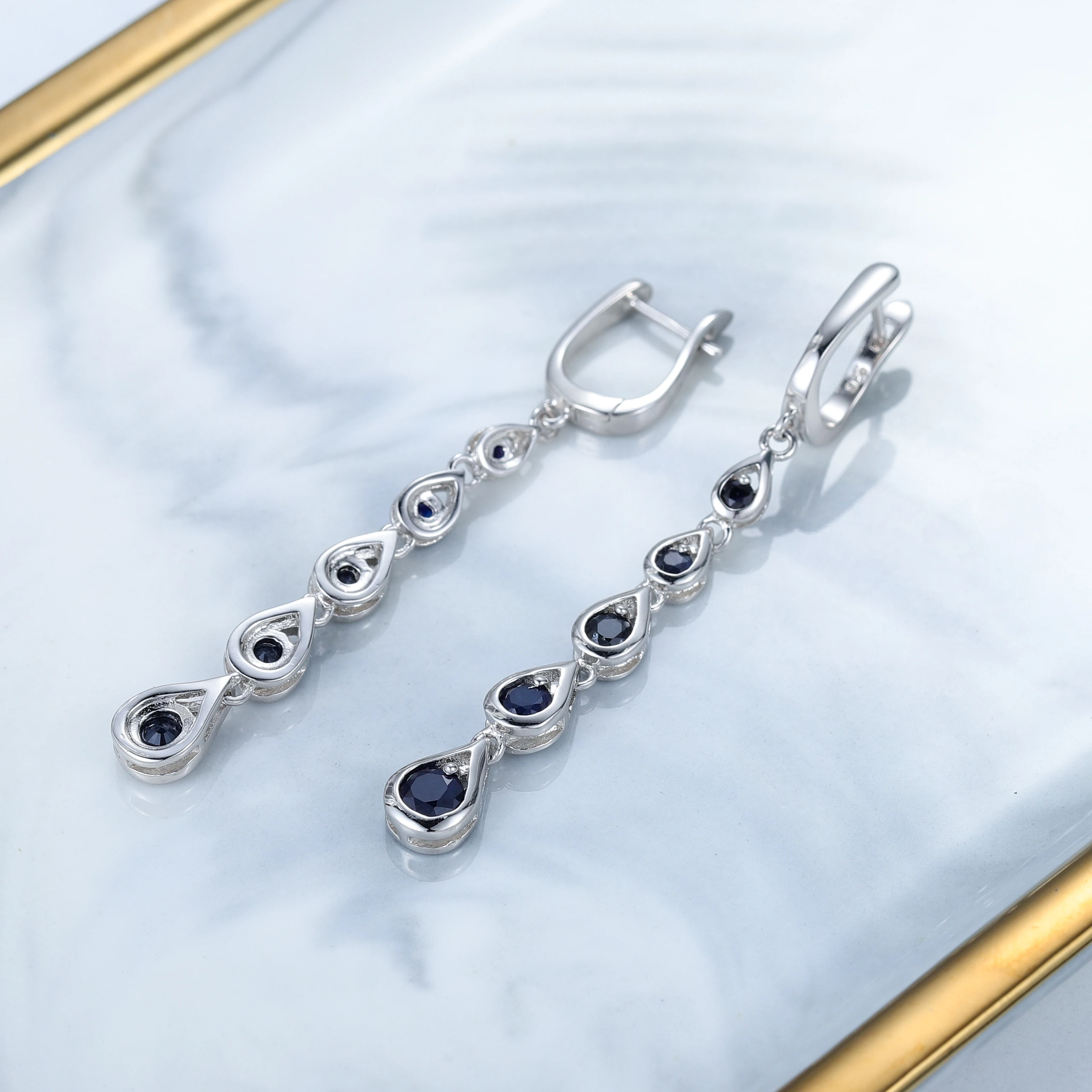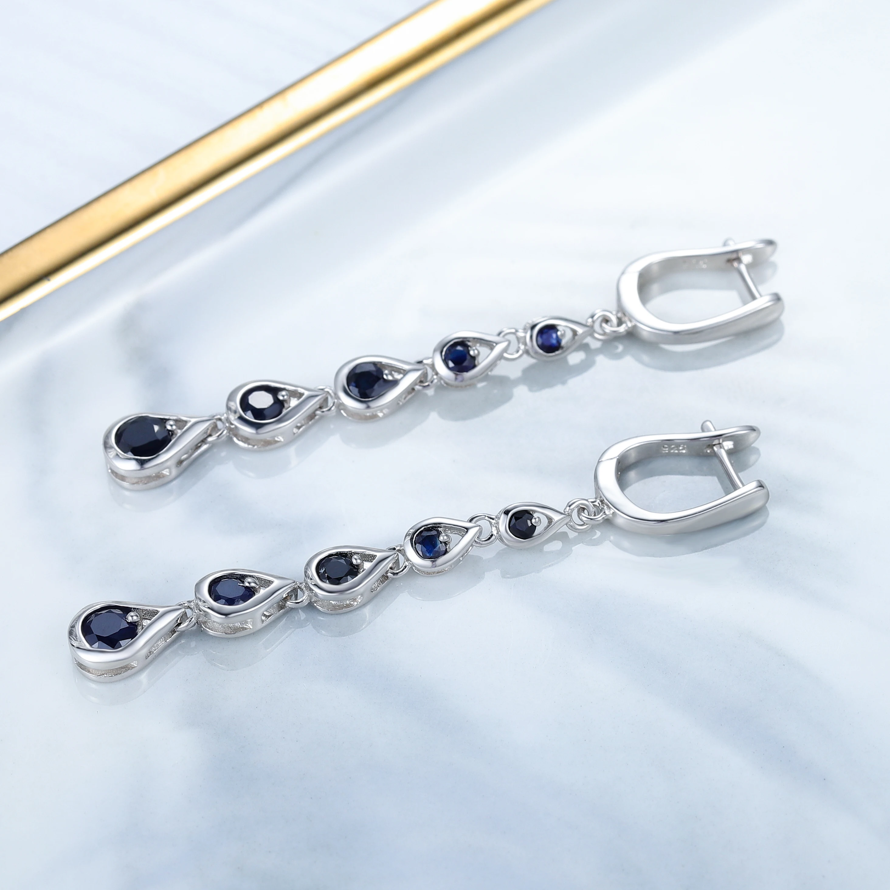 Sapphire September Birthstone Earrings Blue Sterling Silver