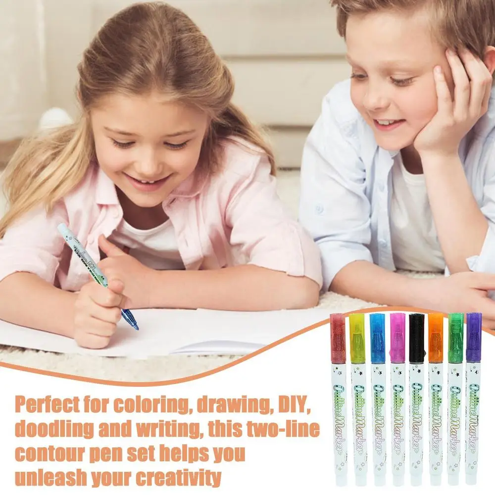 Self Outline Marker 8pcs Double Line Highlight Painting