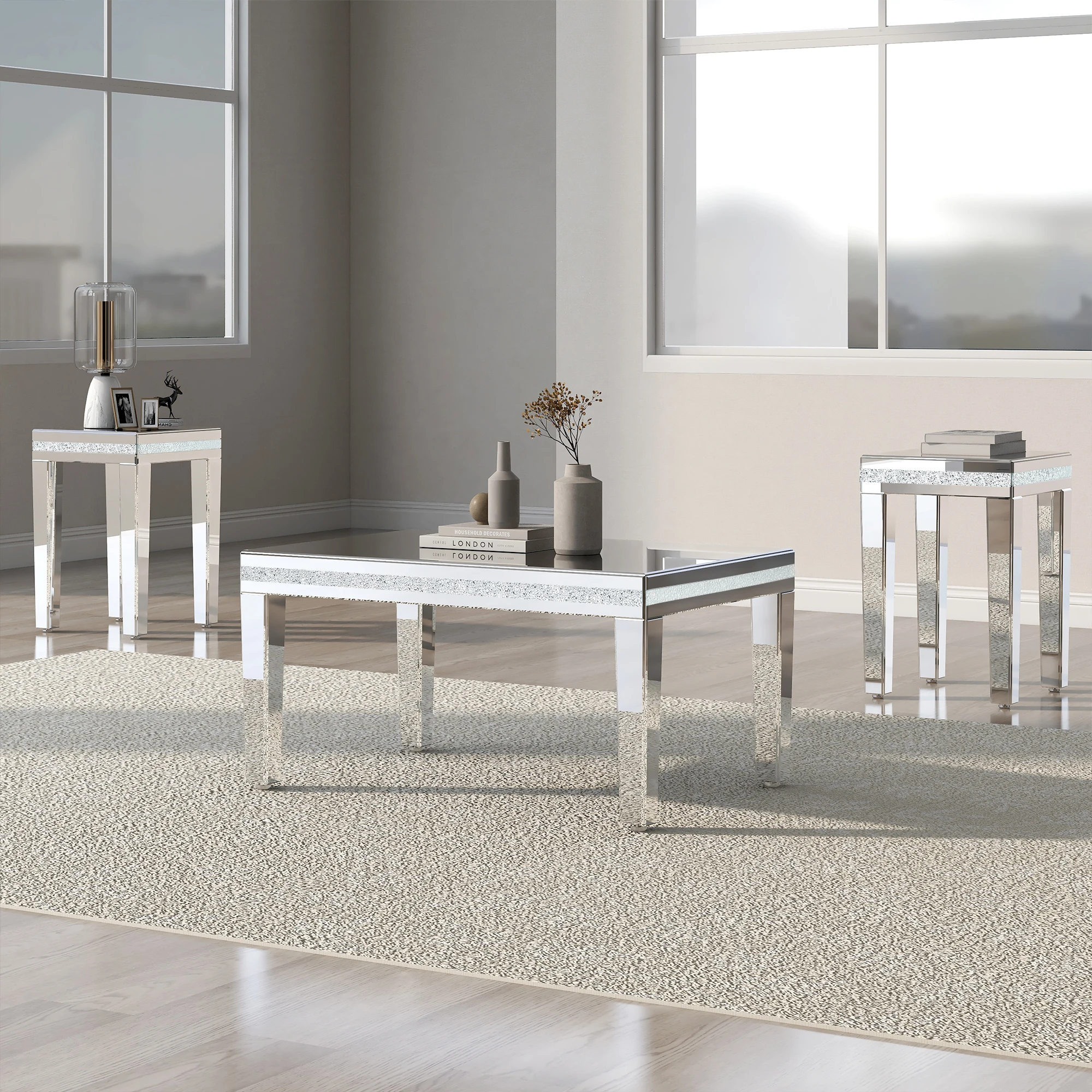 Set of 3 Fashionable Modern Glass Mirrored Coffee Table