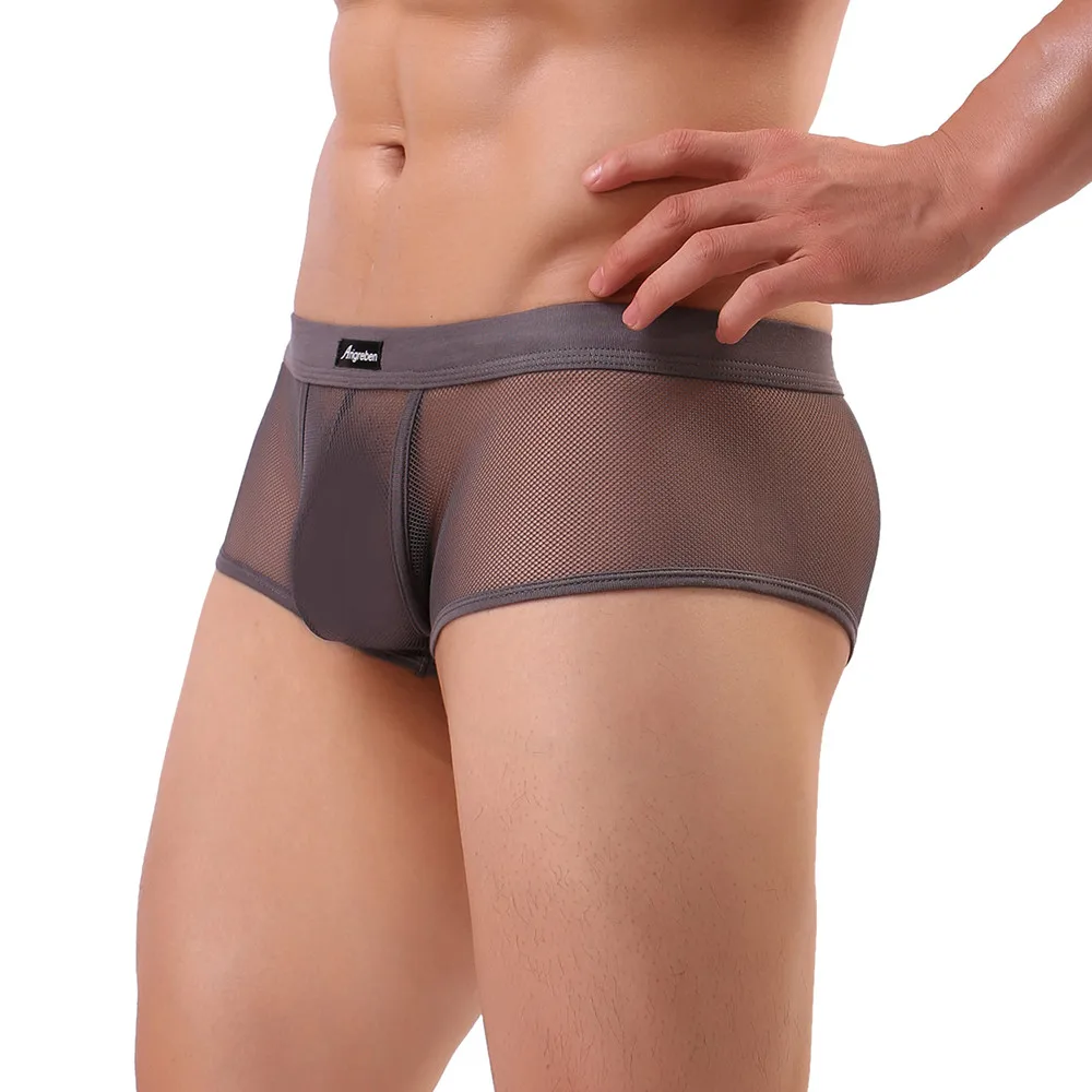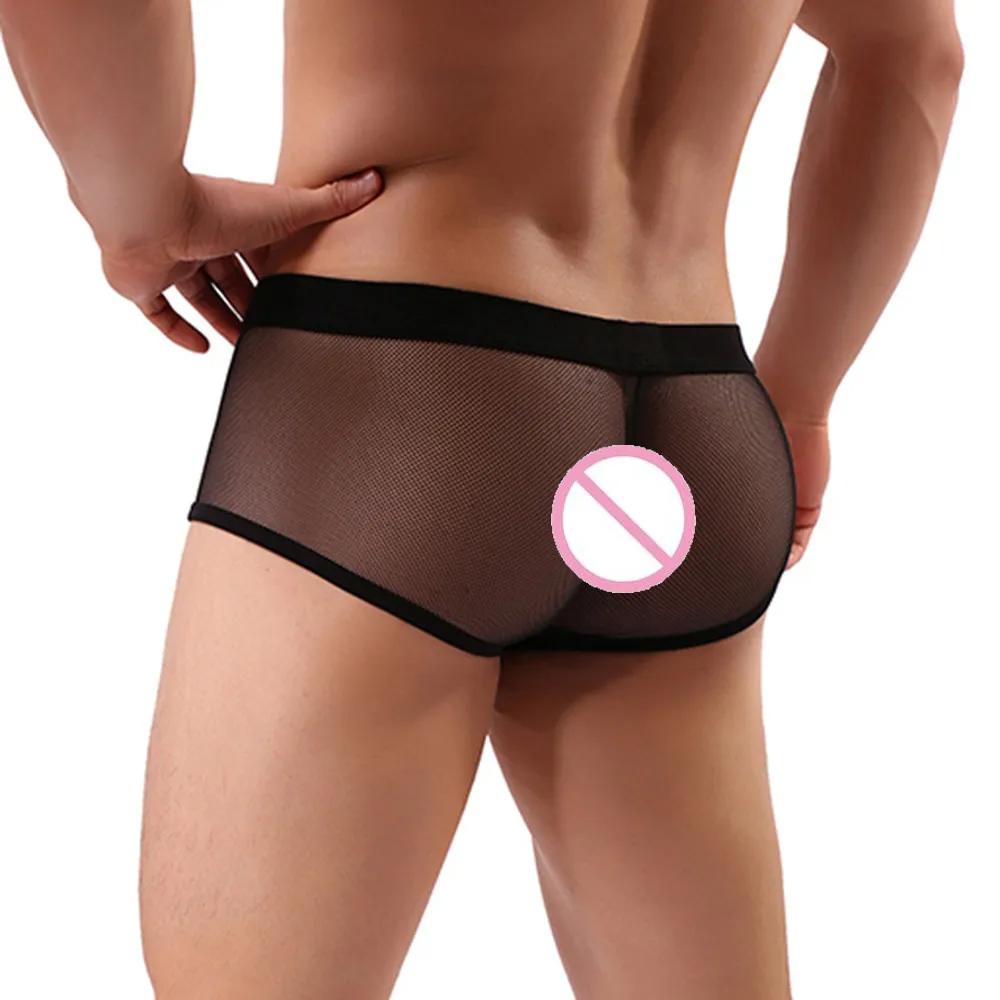 Sexy Men Underwear Mesh Breathable Boxer Shorts