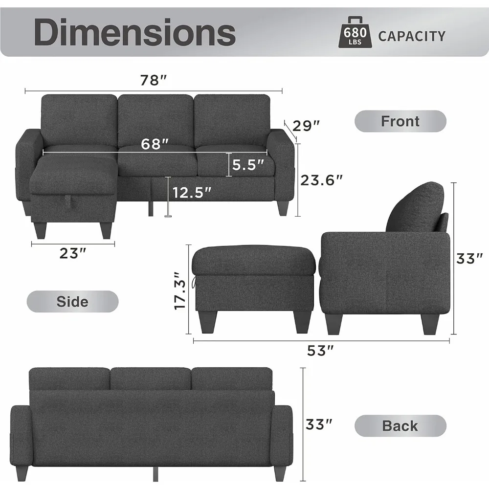 Sofa Living Room Dark Gray Recliner Sofa Bed