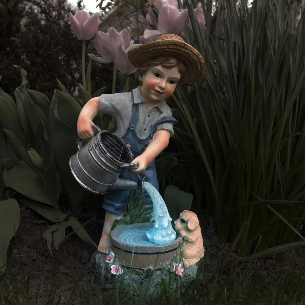 Solar Outdoor LED Light & Little Boy Gardening Decoration