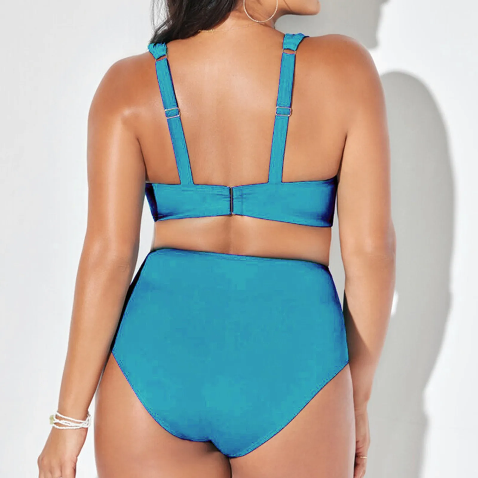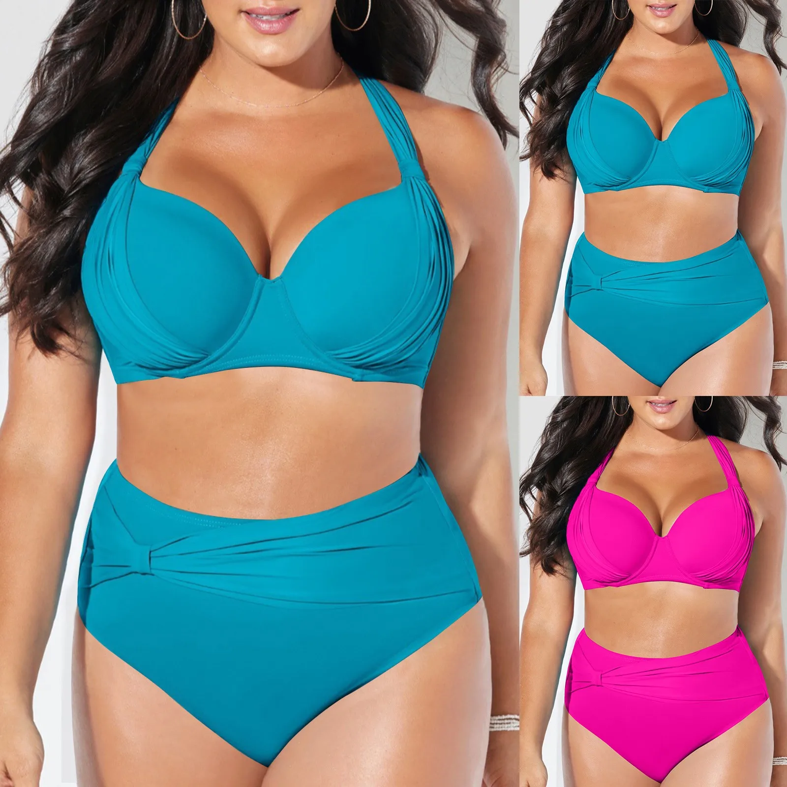 Women's split two-piece swimsuit, solid color and oversized, high waisted, sexy bikini