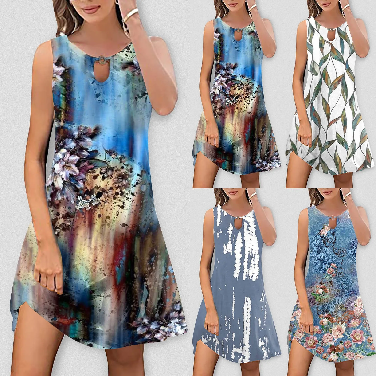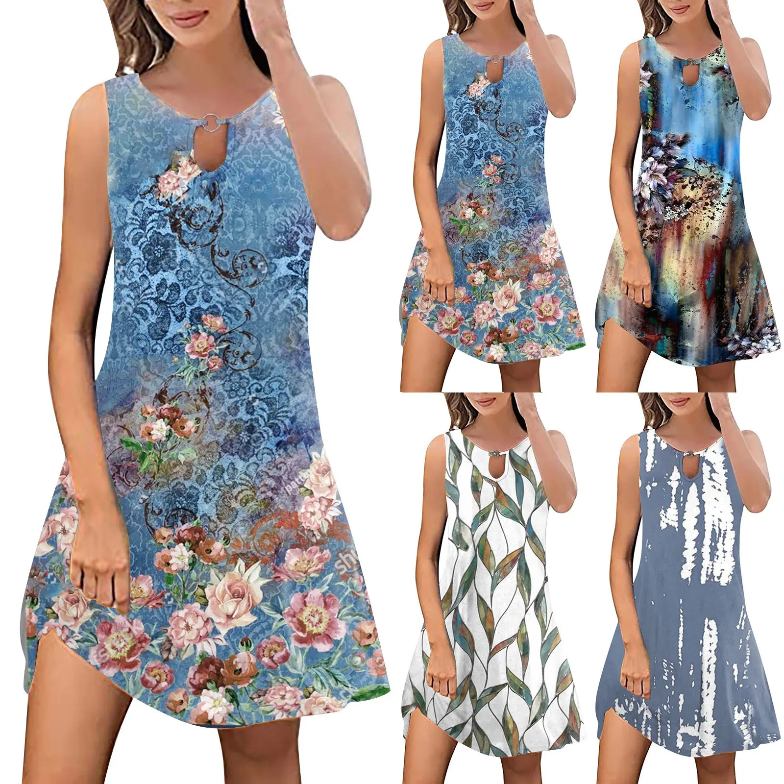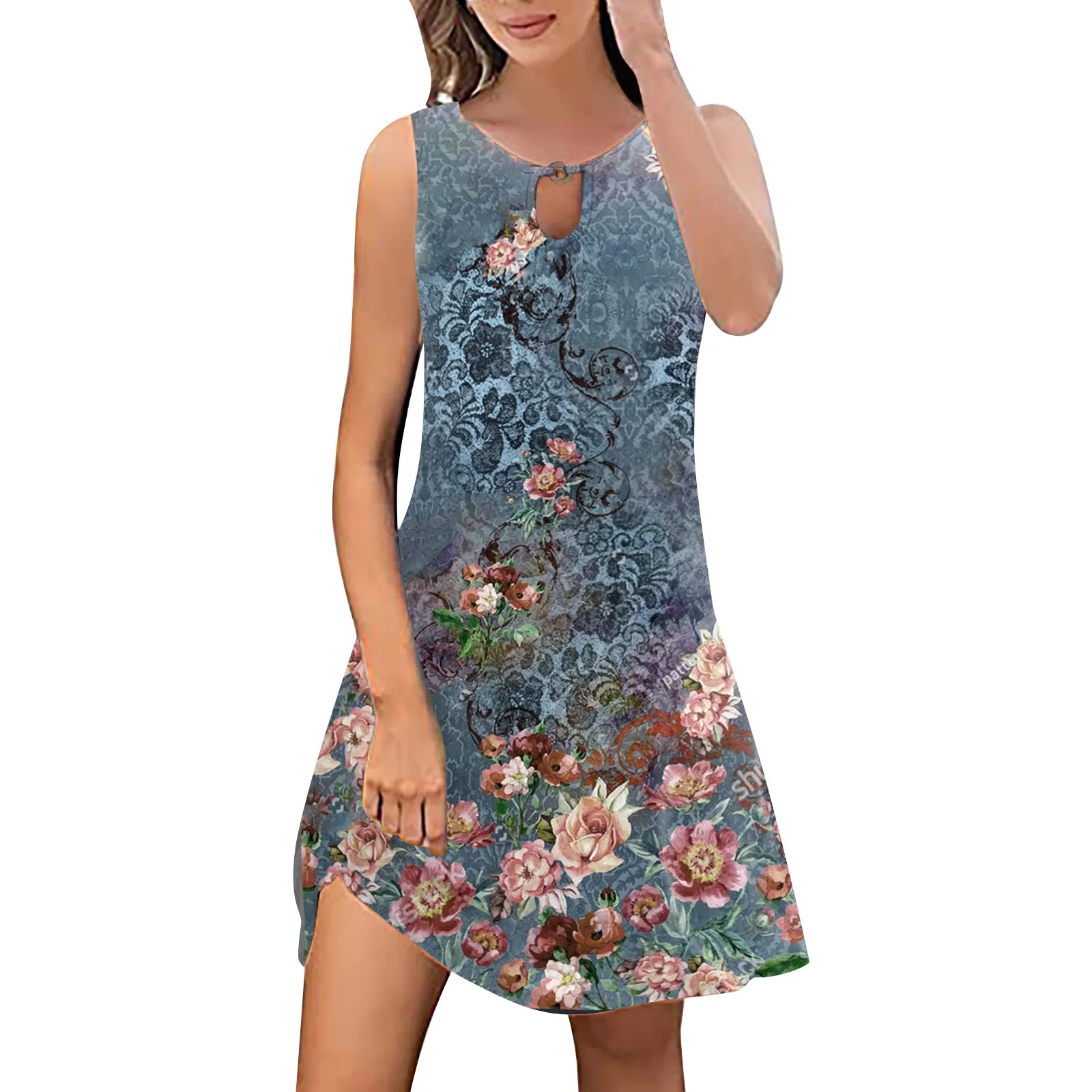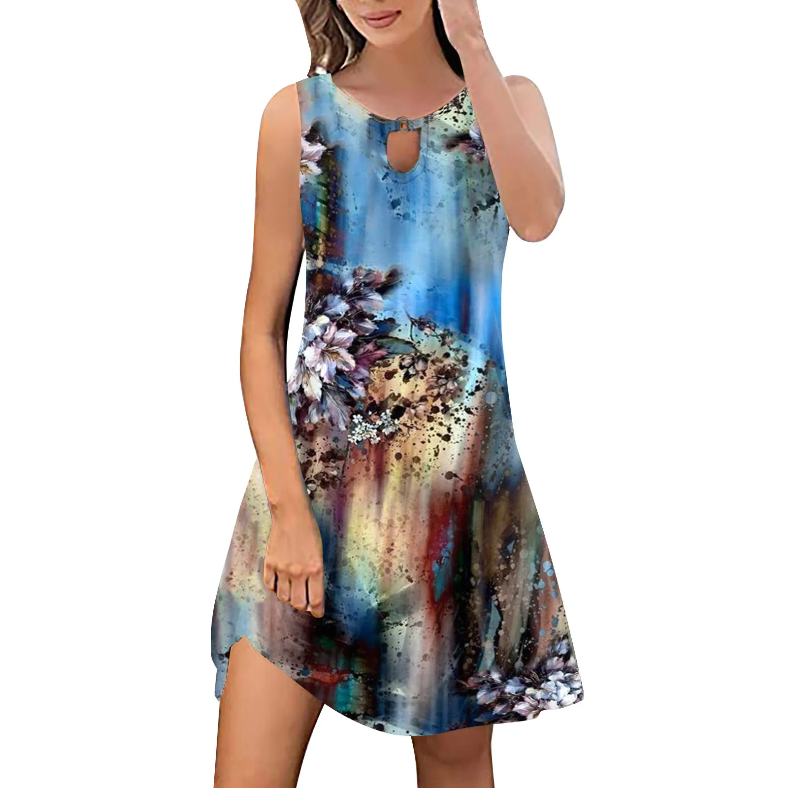 Spaghetti Strap Sundress Women's Gradient Floral Print