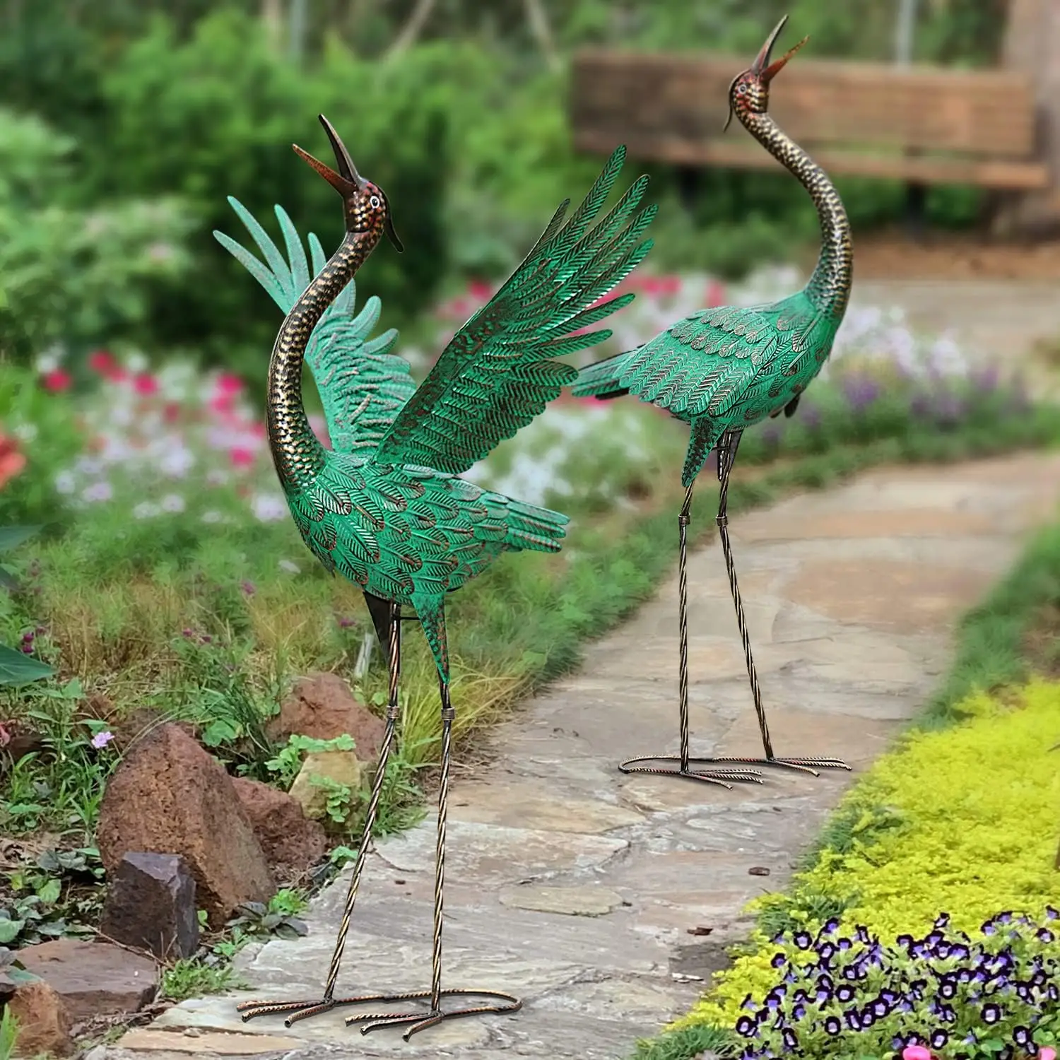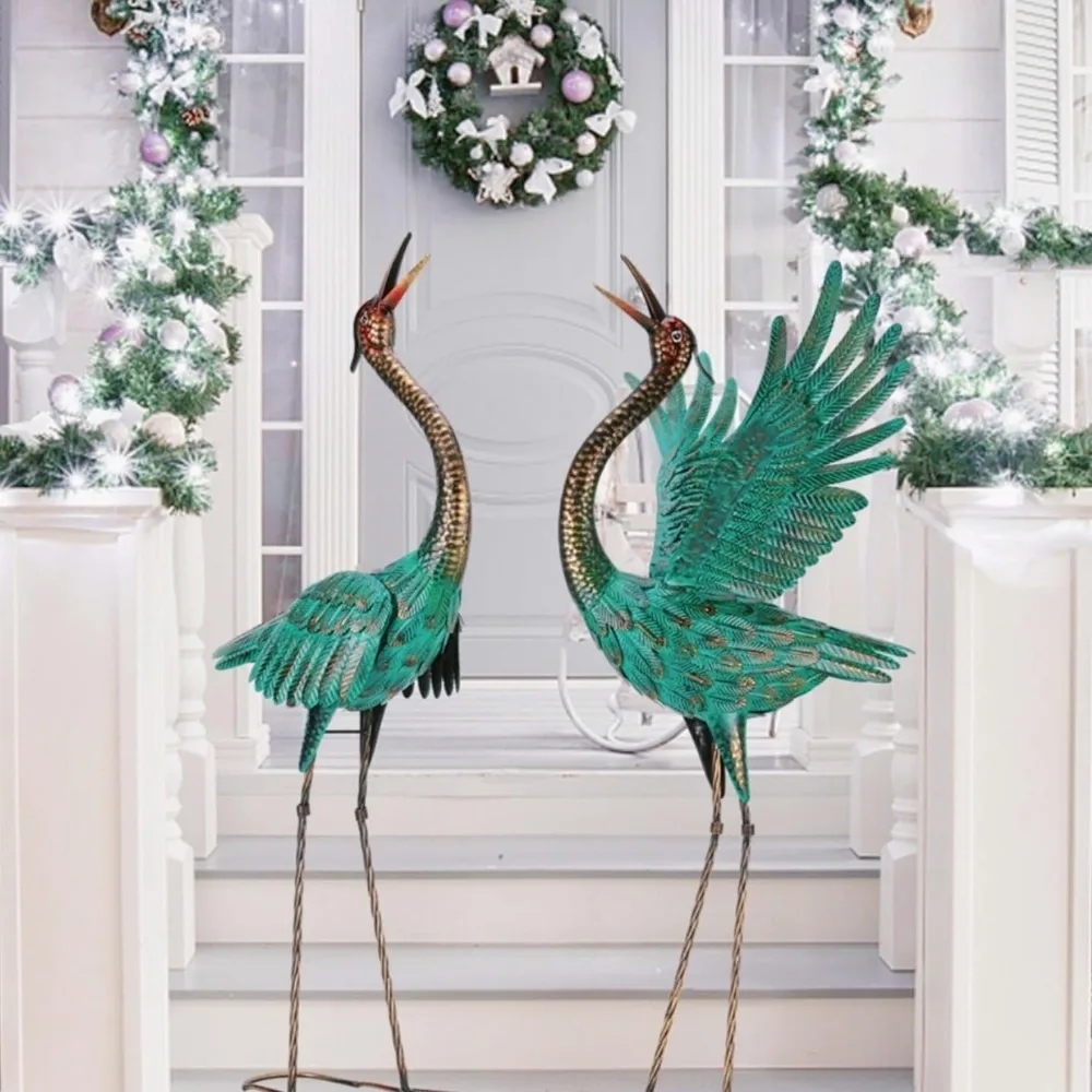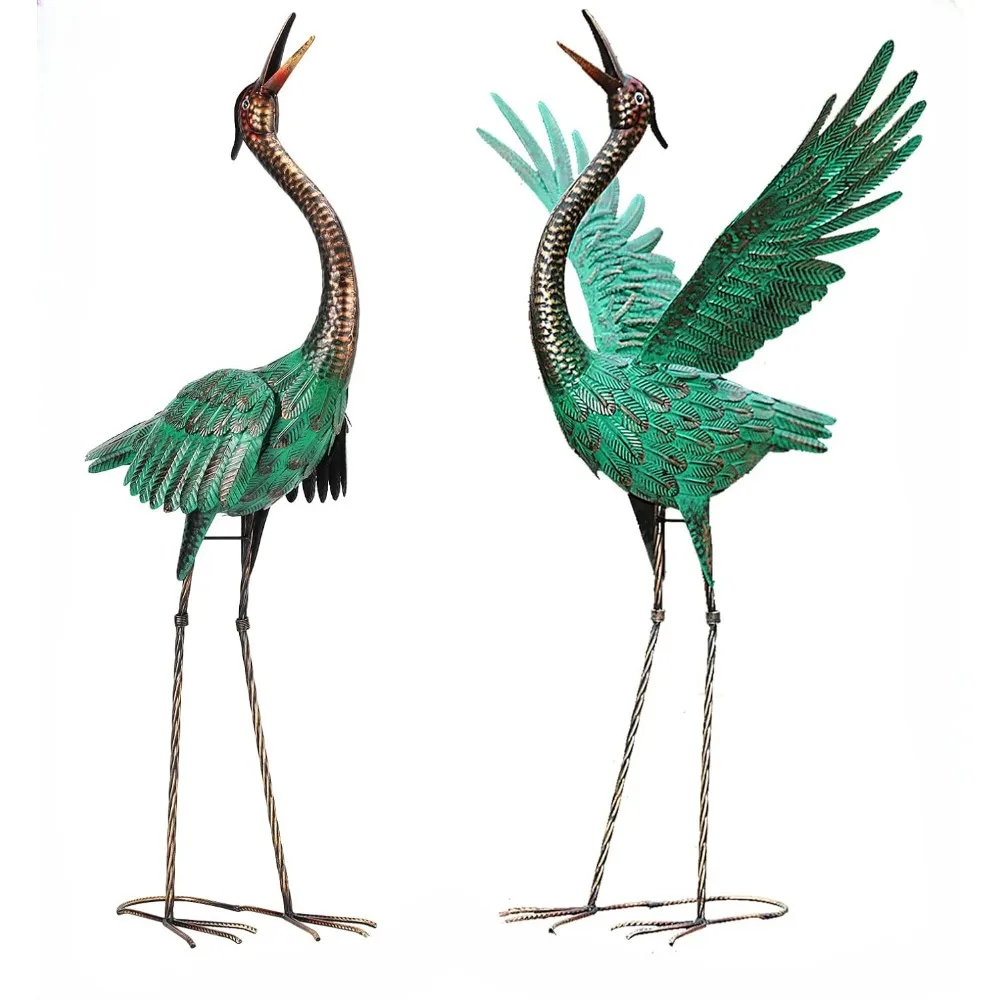 Statue Crane Garden Statues Outdoor Metal Heron Yard Art Crane