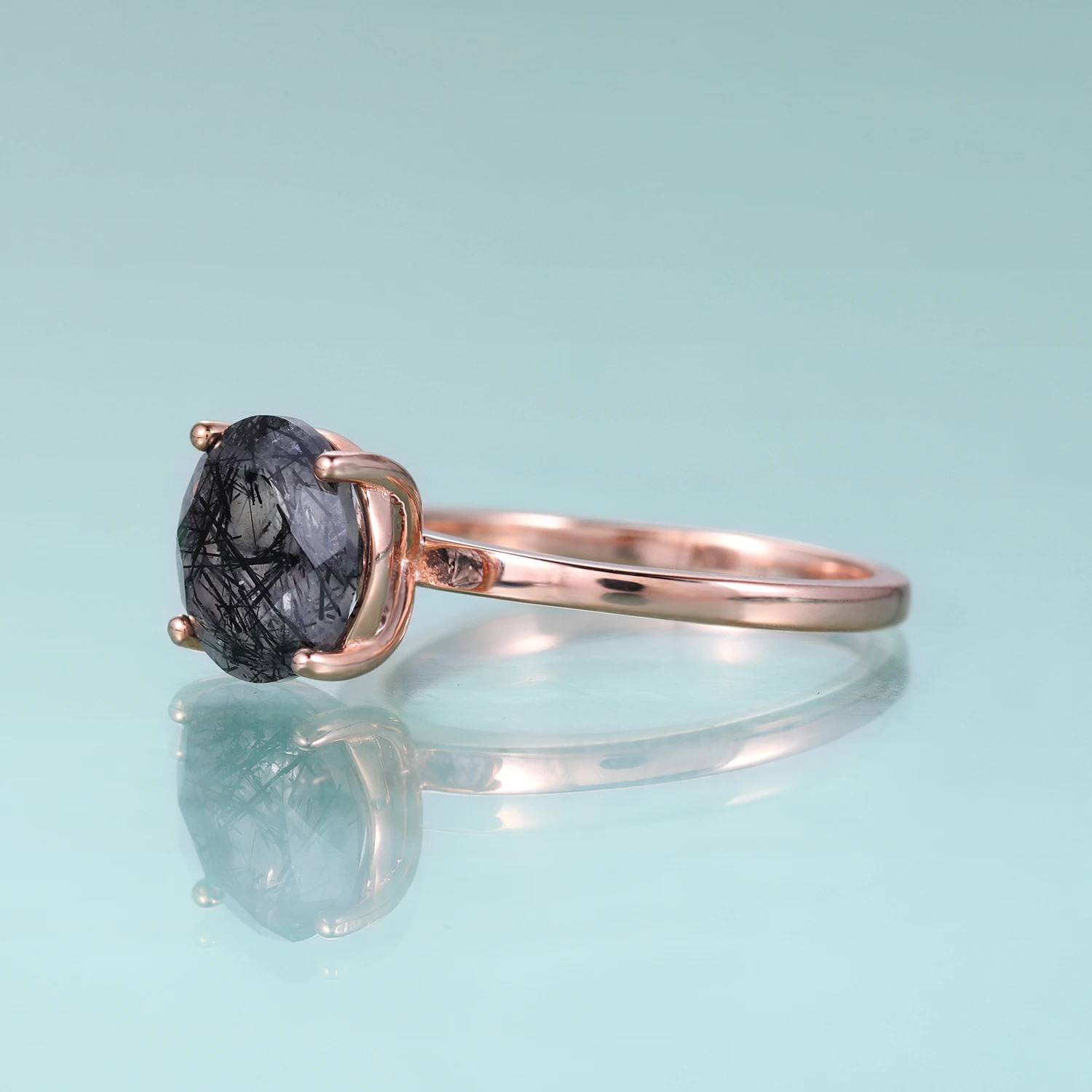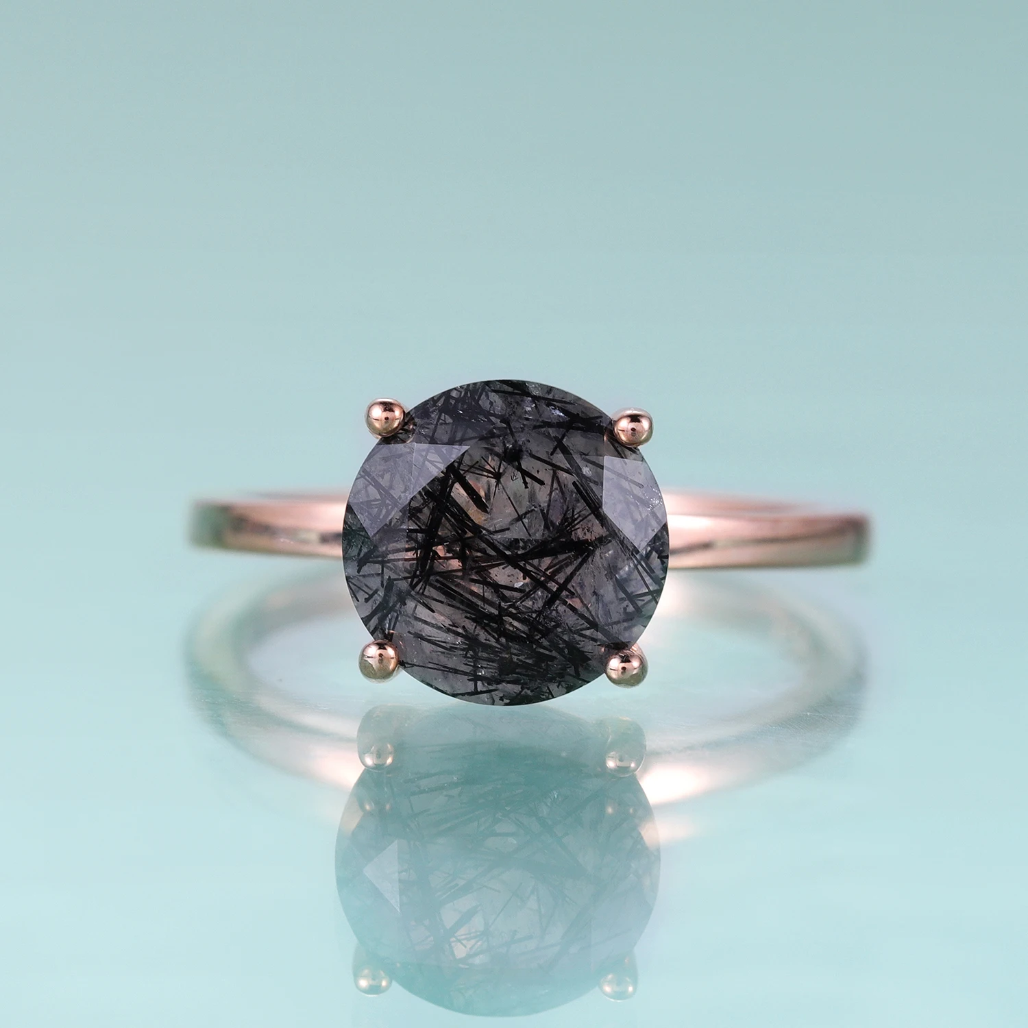 Sterling Silver Gemstone Ring Round Black Rutilated Quartz