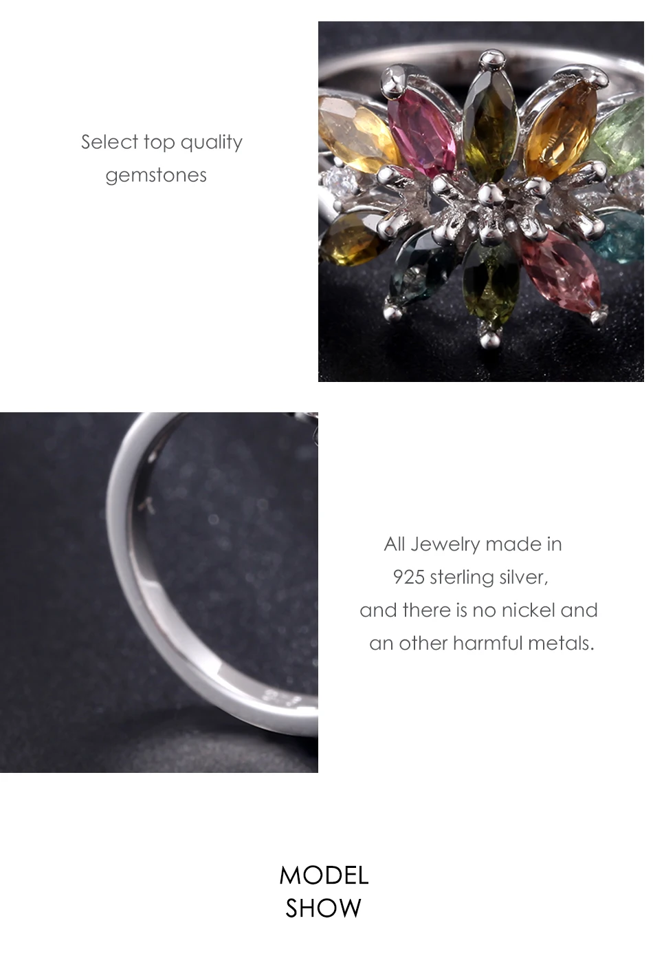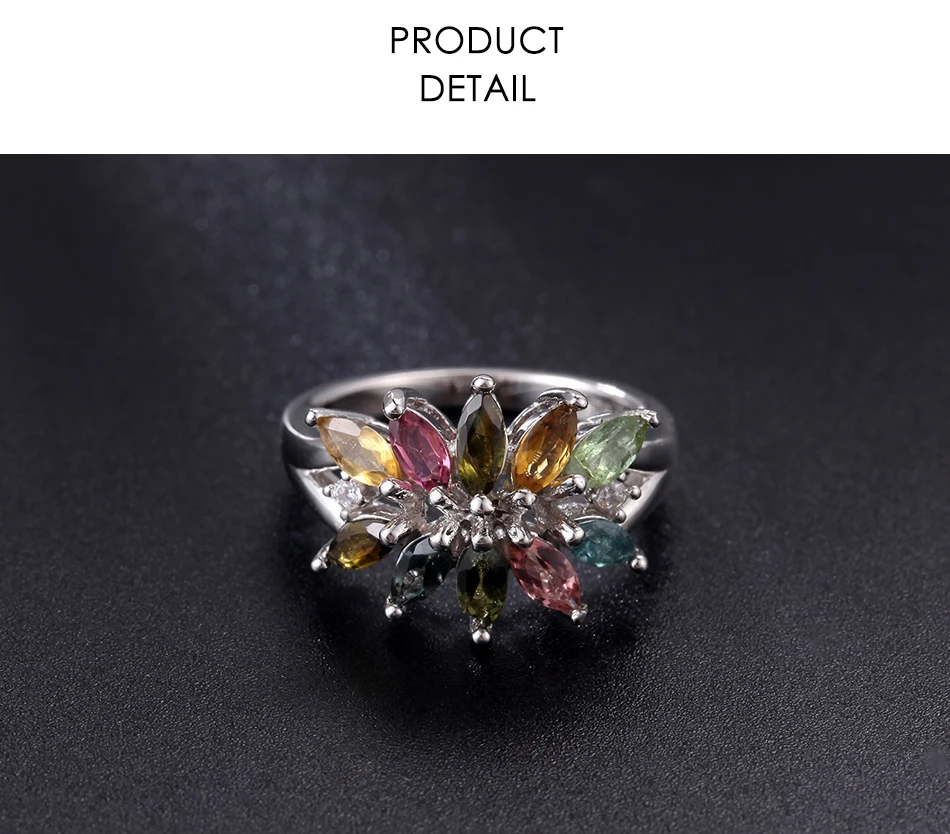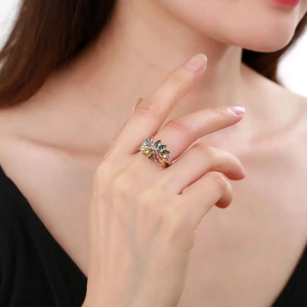 Sterling Silver Natural Marquise Tourmaline Vintage Ring October Birthstone