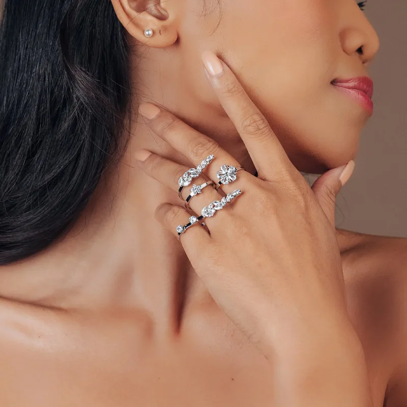 Stonefans Cubic Zircon Multi Finger Ring Bridal Wedding
