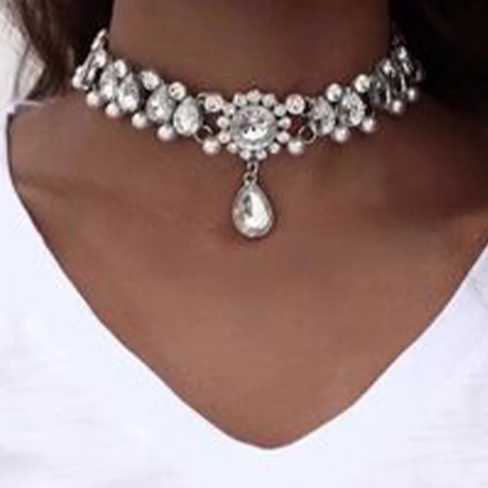 Stonefans NEW Luxury Water Drop Crystal Choker Necklace