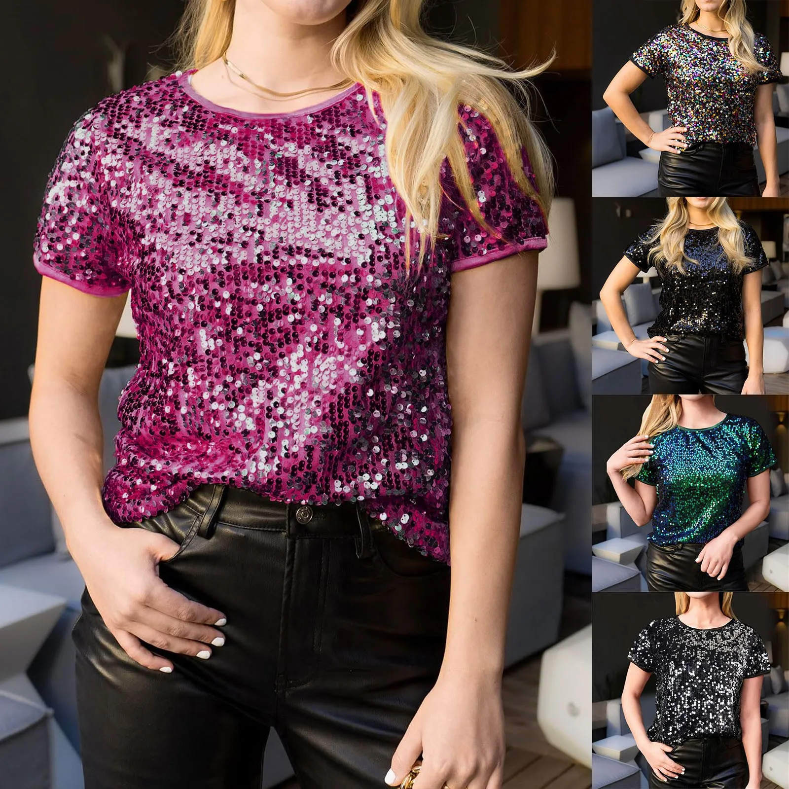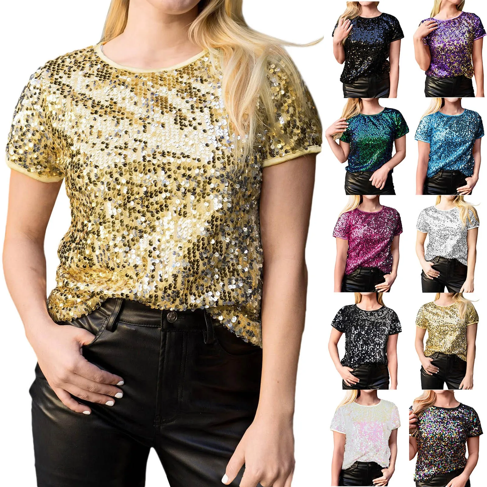 Streetwear Short Sleeve Sequins T-Shirts