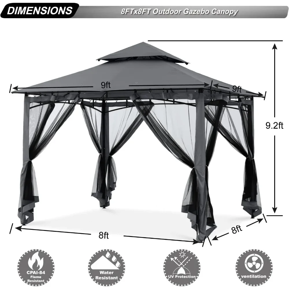 Sturdy Patio Gazebo 8 Ft X 8 Ft With Mosquito Netting