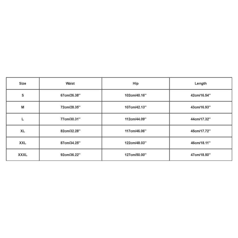 | Size:M | Waist:72cm/28.35'' | Hip:107cm/42.13'' | Length:43cm/16.93'' |