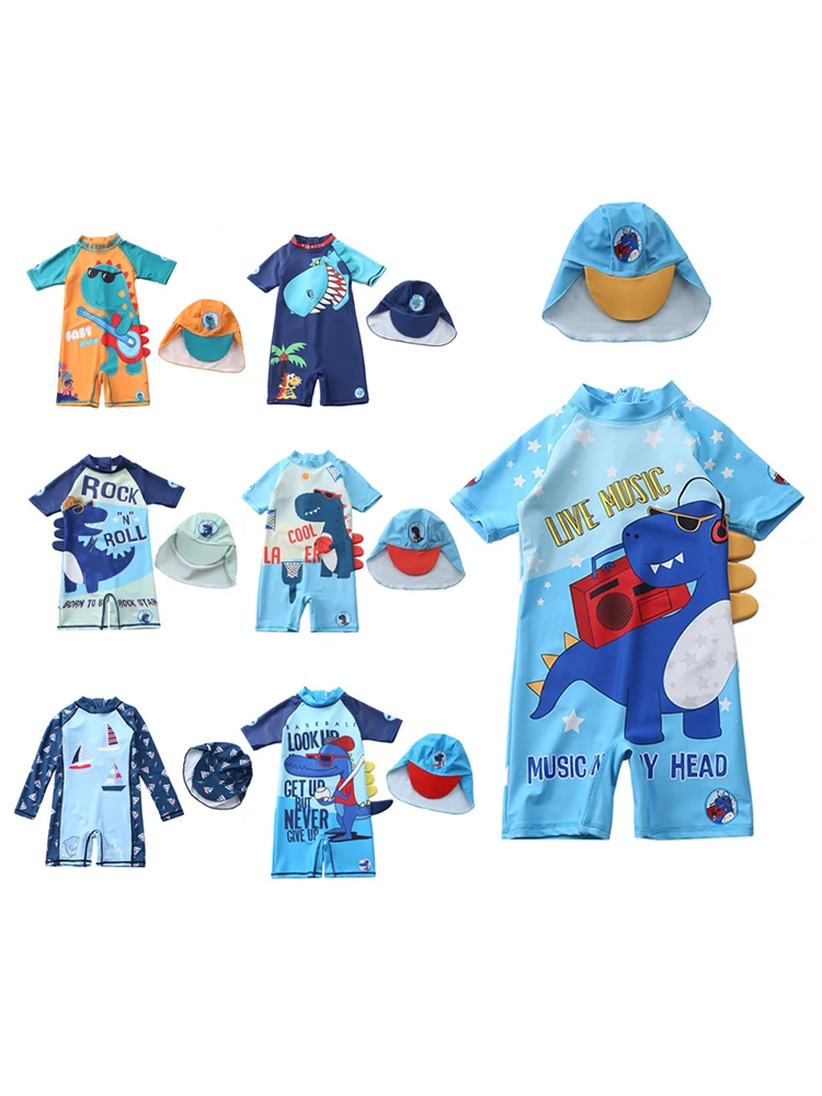 Toddler Swimsuit Boy with Cap: newborn swimwear