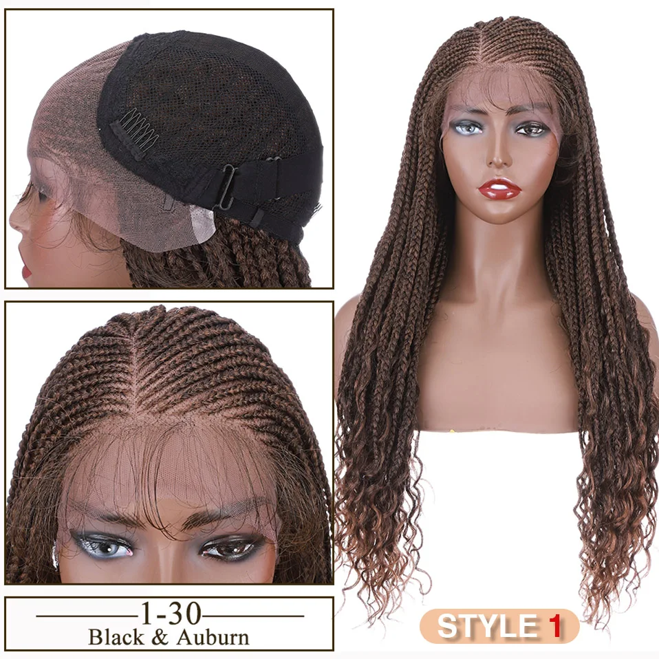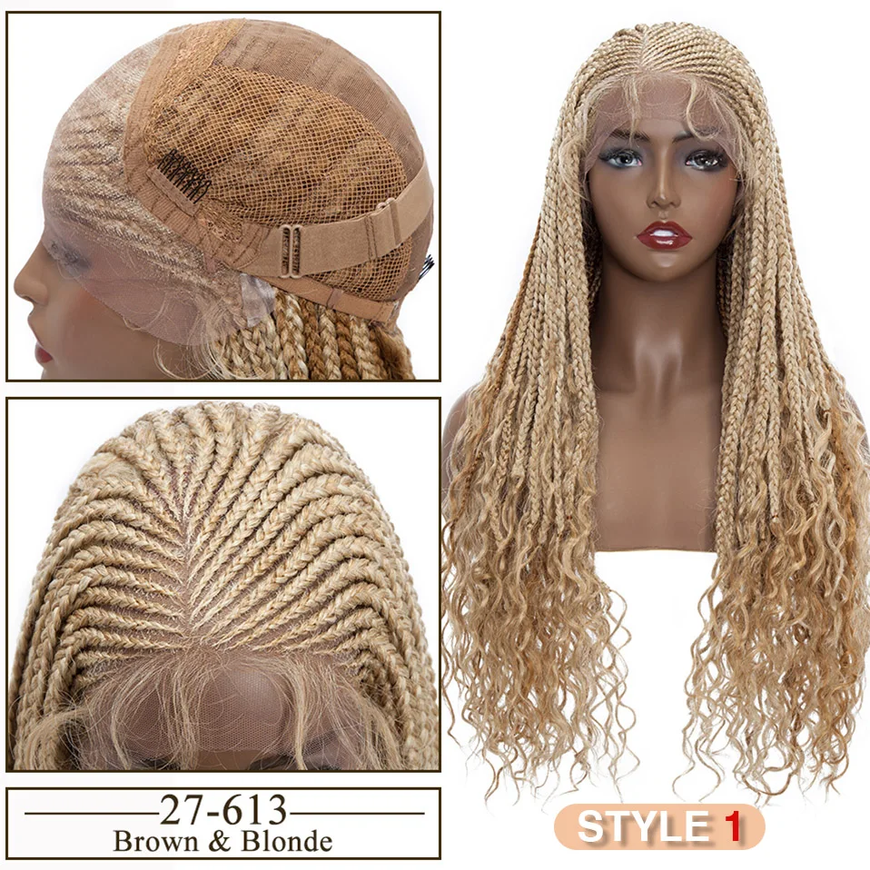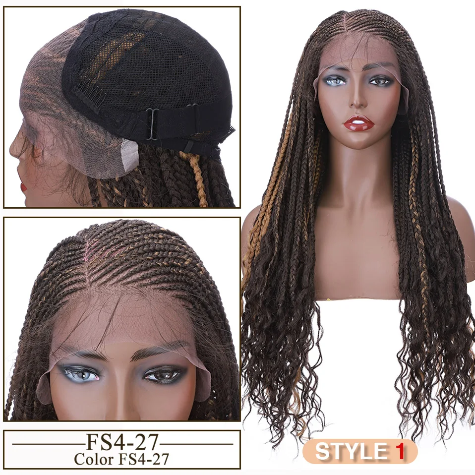Synthetic 28'' Cornrow Braids Lace Wigs Curly Ends Box Braided