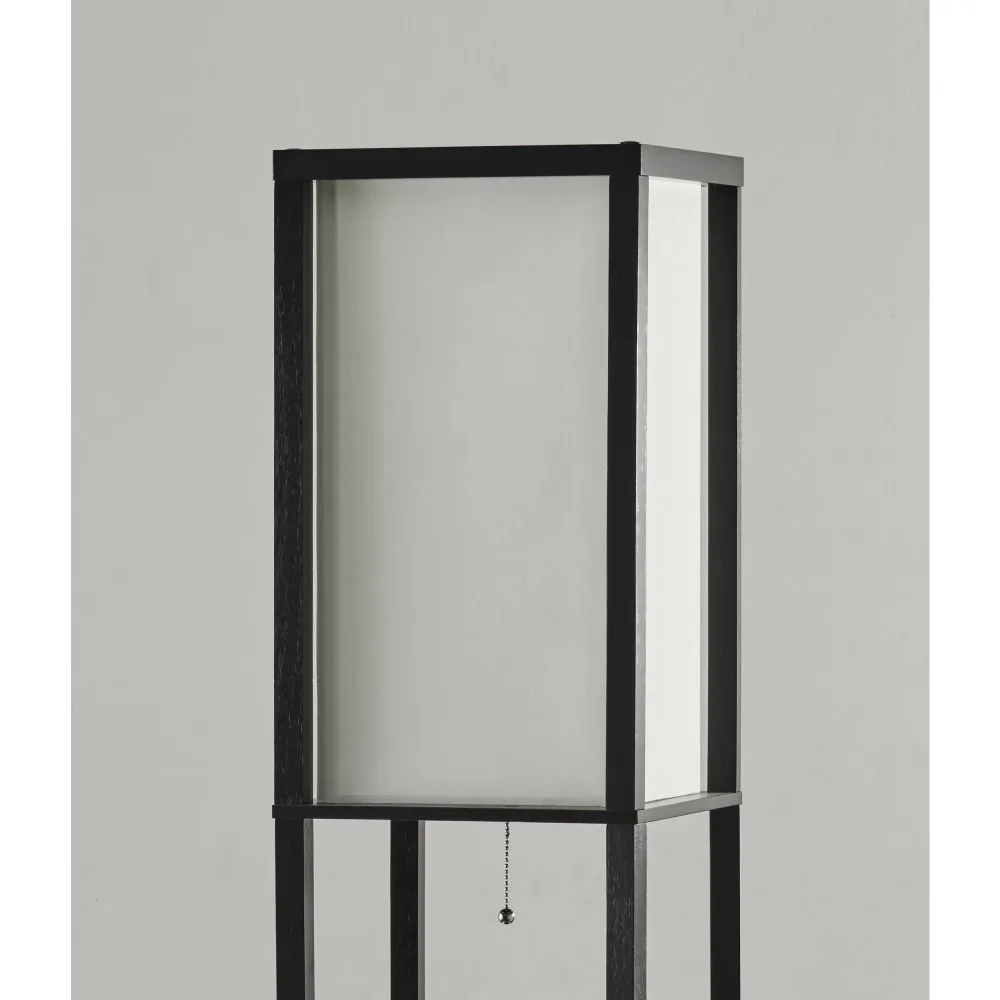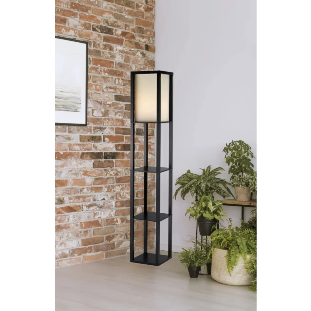 Tall Shelf Floor Lamp Black PVC Veneer on MDF Stand