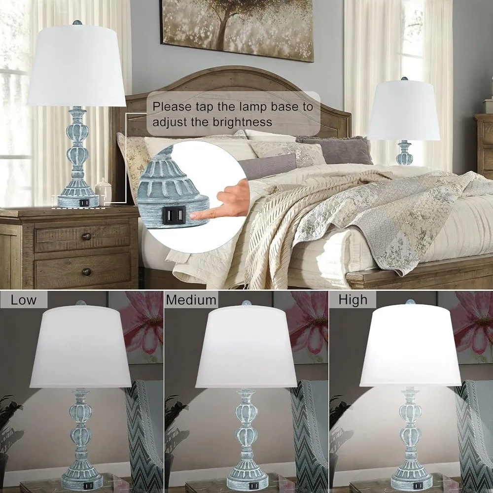 Each bedside lamp comes with two USB charging ports, which conveniently located on the base of the lamp. The USB ports are available for use whether the lamp is on or off as long as the lamp is plugged in. You can charge your mobile phones, tablets, kindle readers, and other electronic devices when you're at work or sleep. Add more convenience to your life.