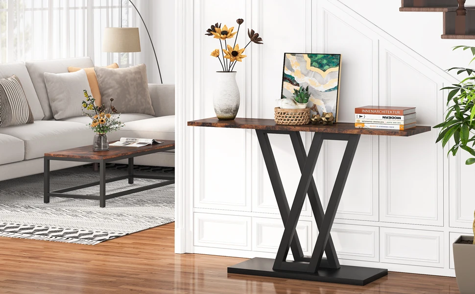 High-Quality Built To Last - Made of E1-graded MDF and powder-coated metal frame, this sofa console table is sturdy and durable for years of use; Also, the 27.5" L x 11.8" W rectangle metal base enhances stability, it can bear 300LBS.