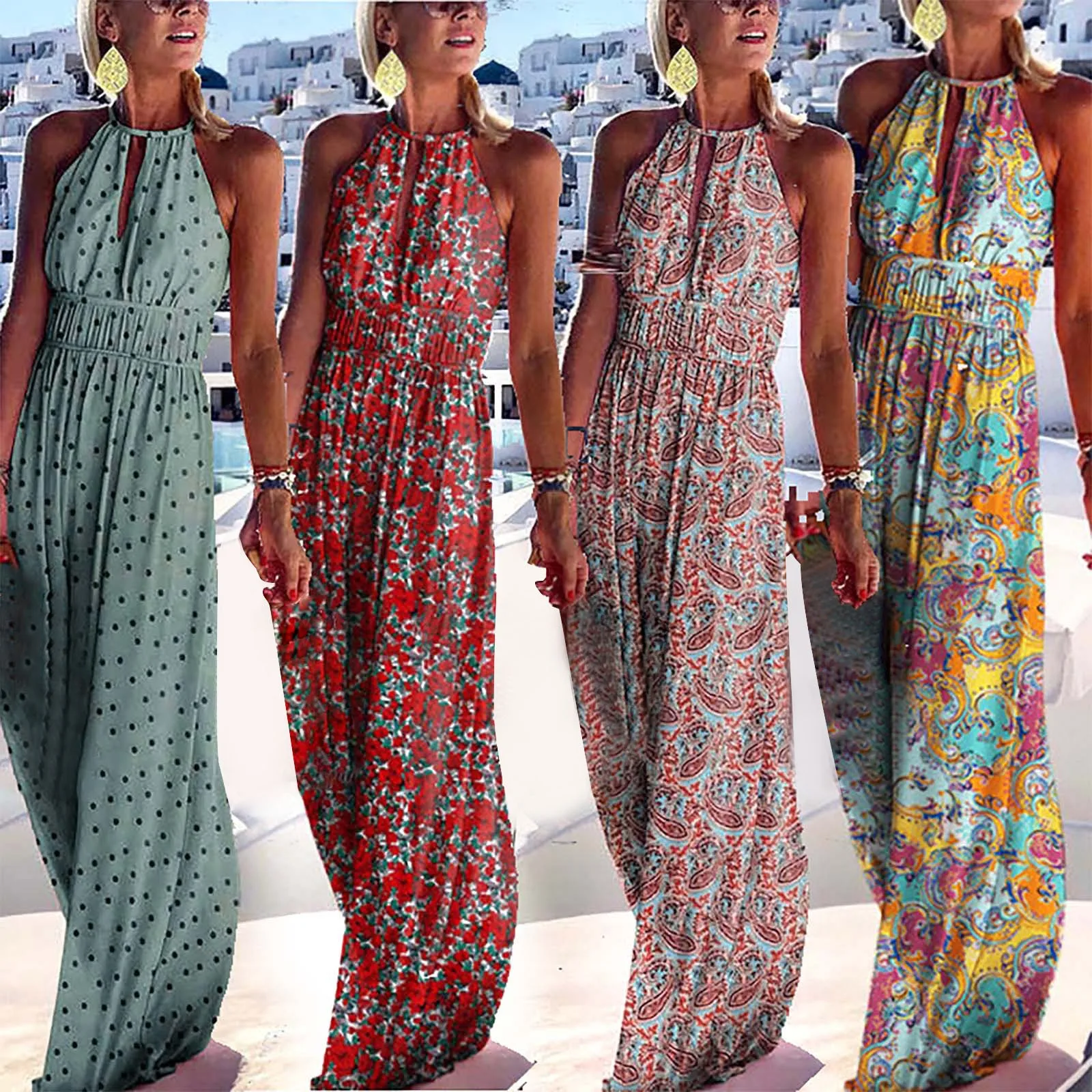 Vintage Boho Style Floral Print Long Dresses