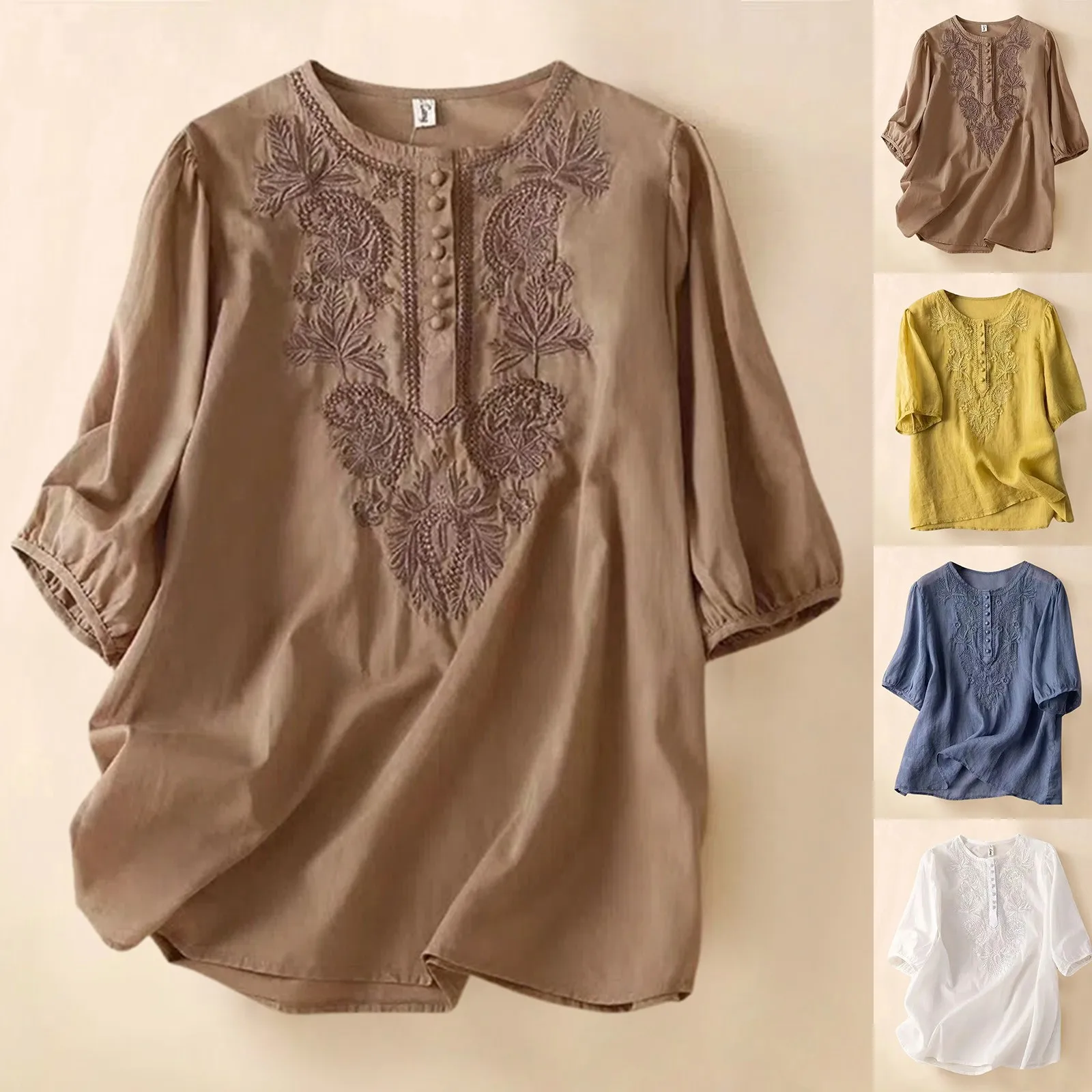 Vintage Women Solid Tops 2024 Summer Casual Tops And Blouses