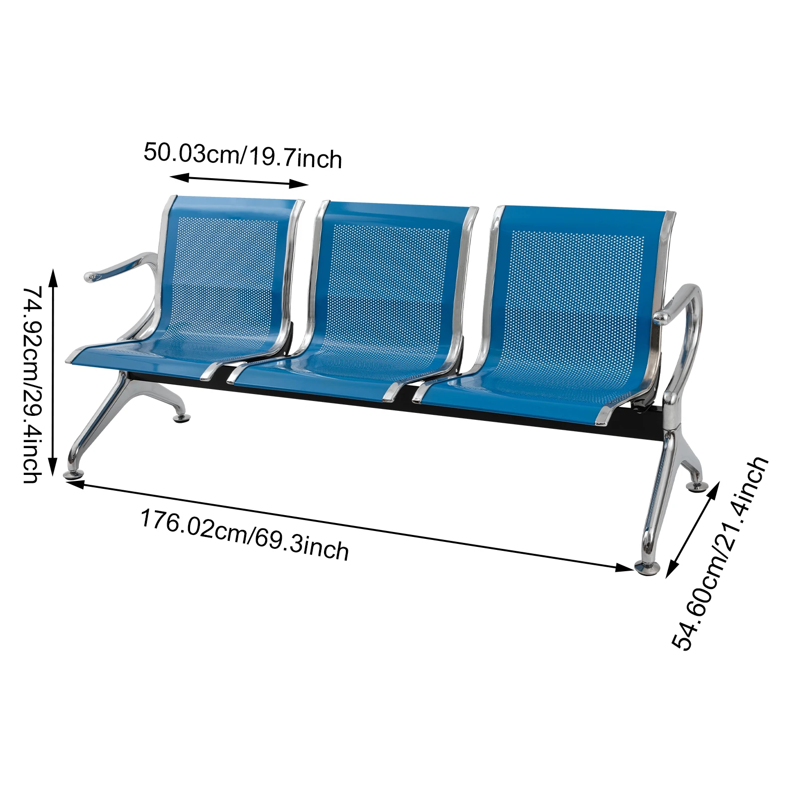 Waiting Room Chair with Arms 3-Seat Airport Reception Bench