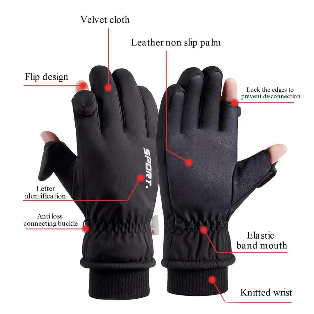 Windproof 2 finger Fishing Gloves Warm Outdoor