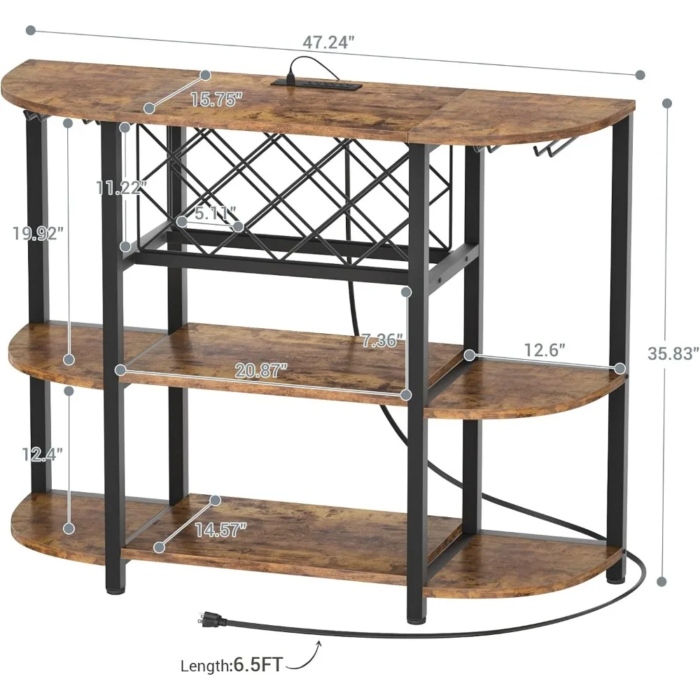 - 🔋【Wine Bar Cabinet with Power Outlets】When you want to put a coffee maker or ice maker on top of a wine rack table, you'll want to put it near an outlet. But our liquor bar rack with outlets can solve this annoying problem. It has three built-in plugs and two USB ports to provide power for your various small kitchen appliances, and you can also put your audio on it and use the USB port to power it. When you drink wine and listen to music, how wonderful! The length of the cable is 6.56FT long.