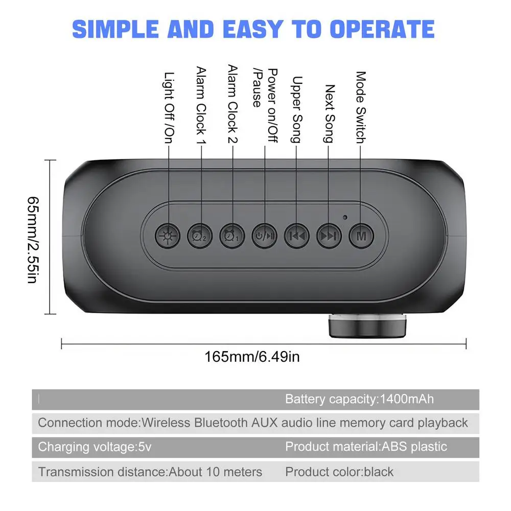 Wireless Blutooth Speaker Dual Alarm Clock LED Light